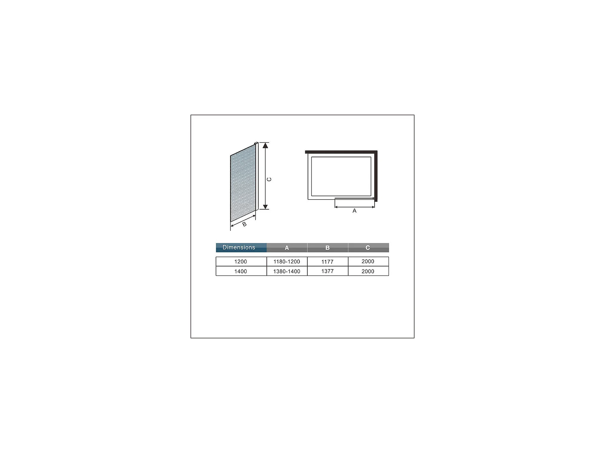Paroi de douche à l'italienne 120x200cm en verre 8mm dépoli et anticalcaire, sans barre de fixation