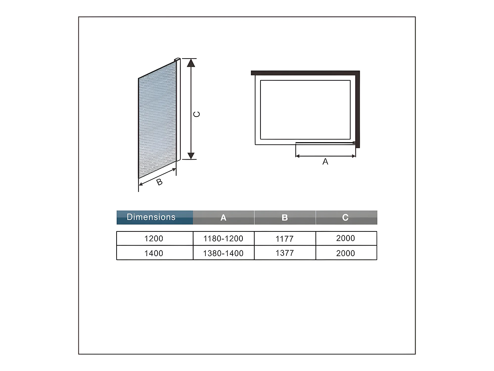 Paroi de douche à l'italienne 140x200cm en 8mm verre trempé anticalcaire, sans barre de fixation