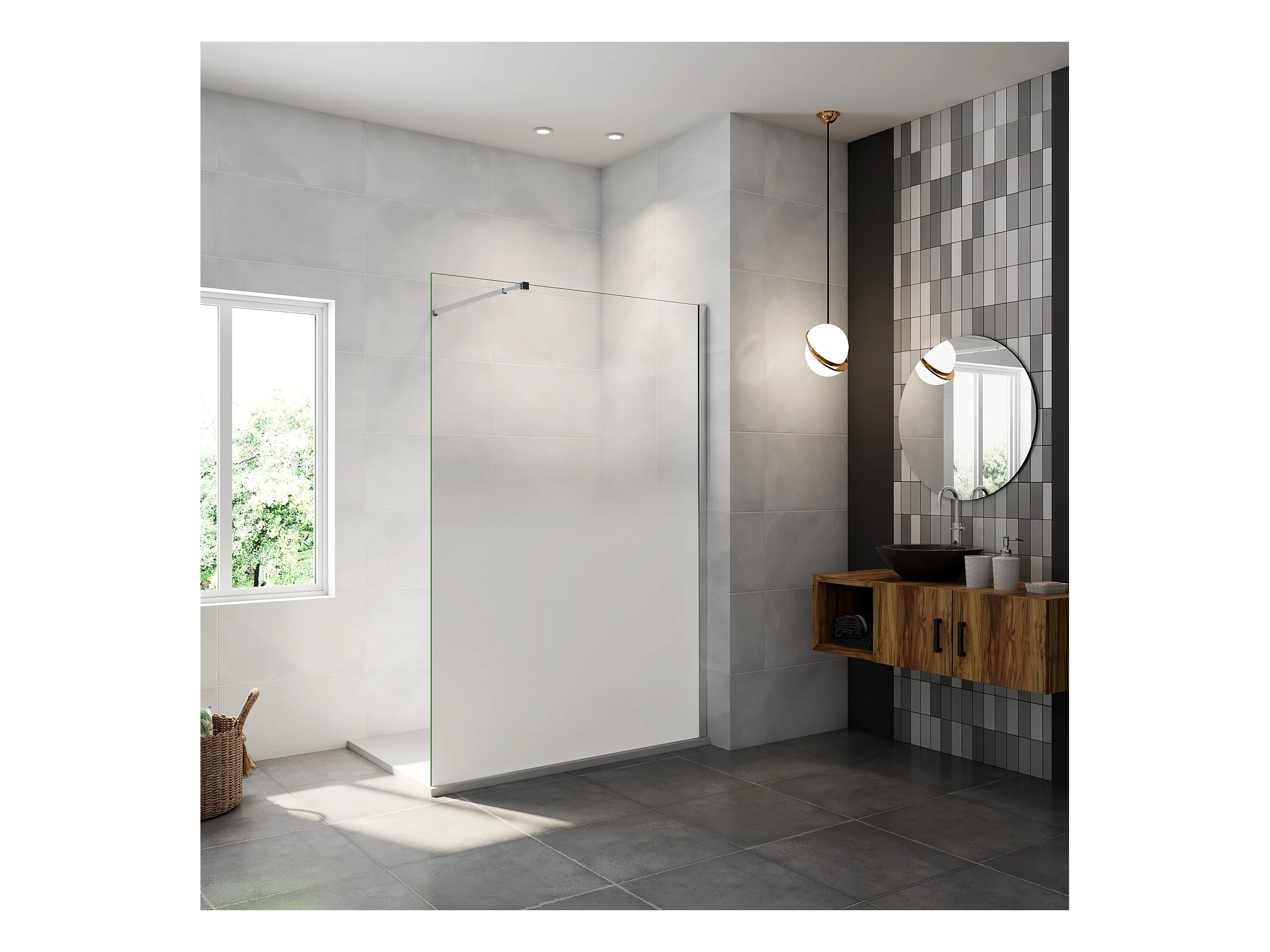 Paroi de douche verre trempé sérigraphié Brume - 140 x 200 cm - 8 mm Verre effet Brume, finition chrome avec barre de fixation 73-120cm