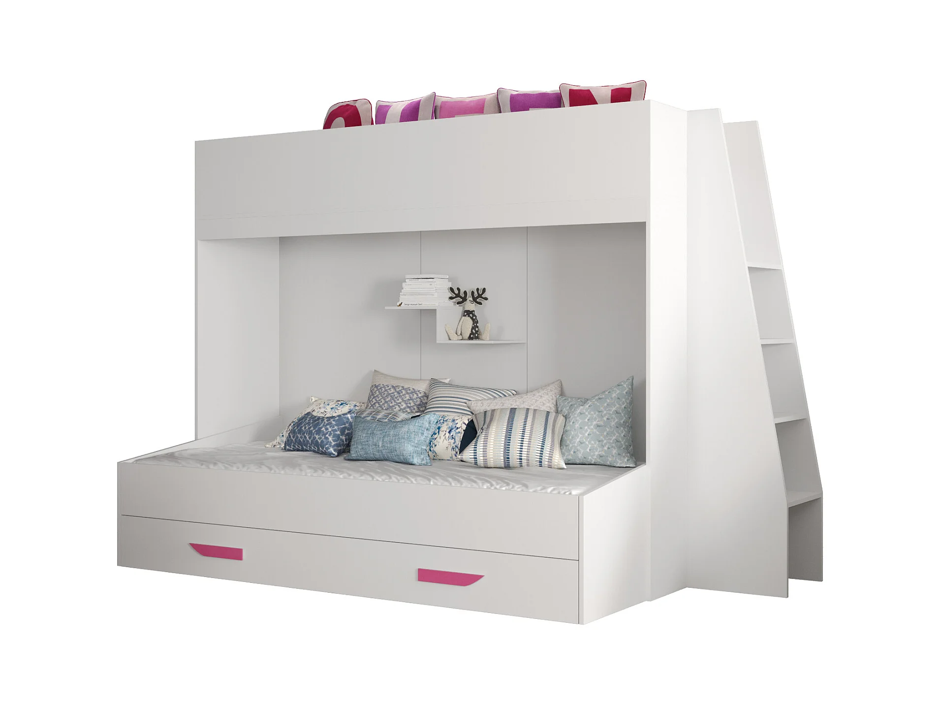 PARTY 14 Lit superposé 247/165/120 (blanc/blanc/rose)