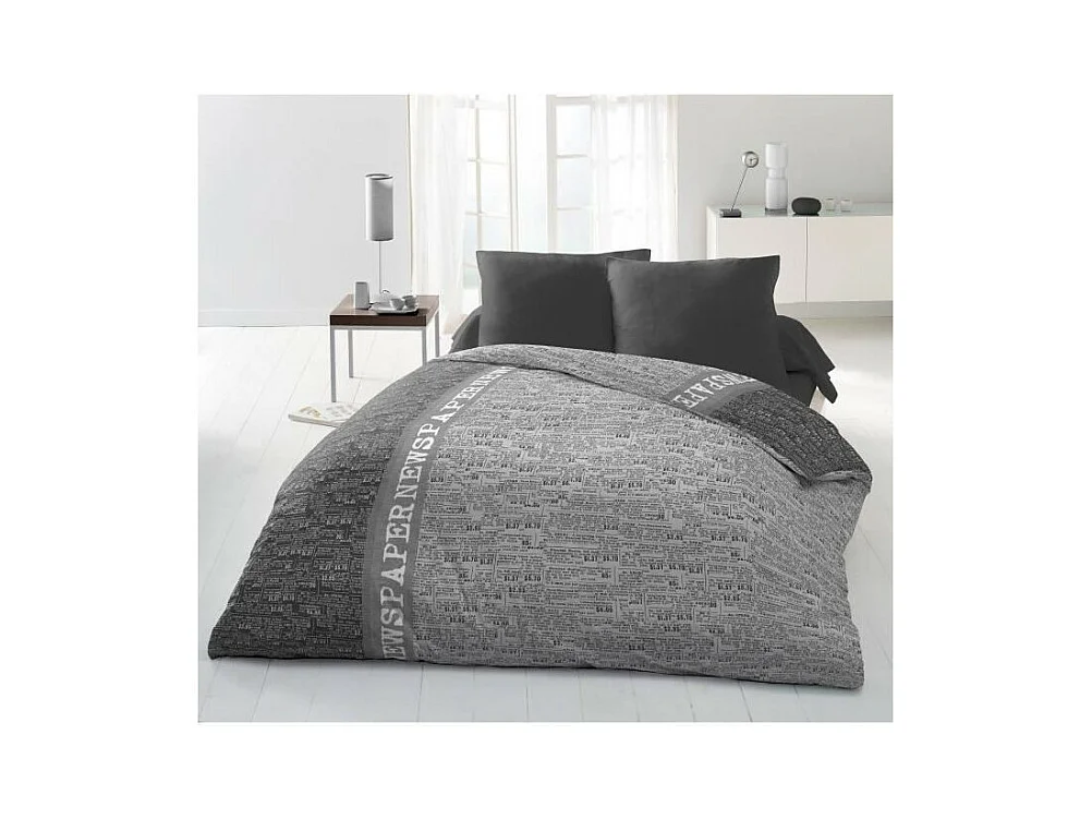 Parure de couette Microfibre NEWSPAPER - 1 housse de couette 220x240 cm + 2 taies 63x63 cm - Gris