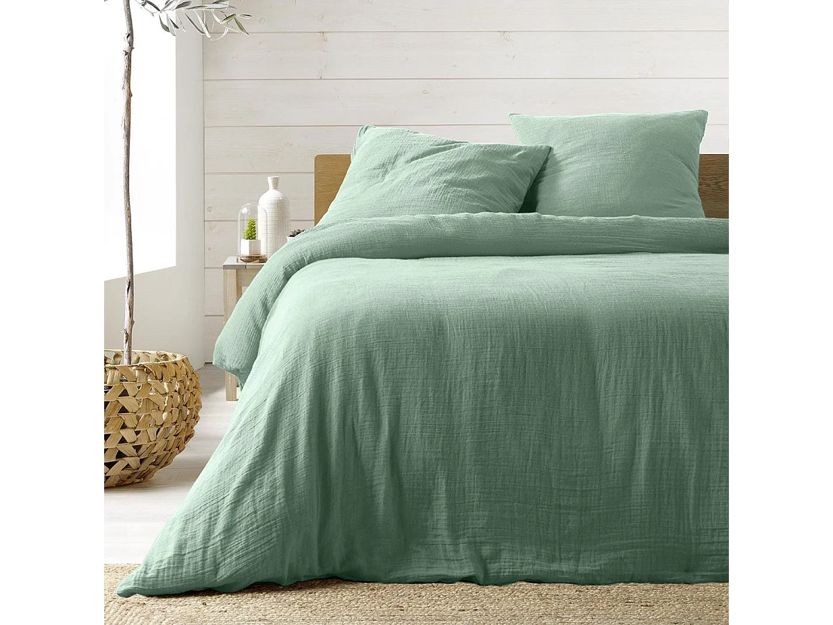 Housse de couette + taie(s) oreiller satin de coton "Occale green"