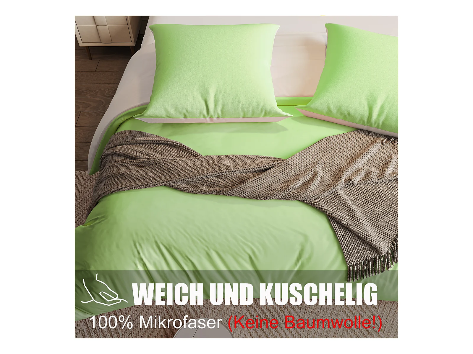 Parure de couette 140 x 200 cm : Housse de couette + 1 taie d'oreiller - 100% Coton - Vert émeraude