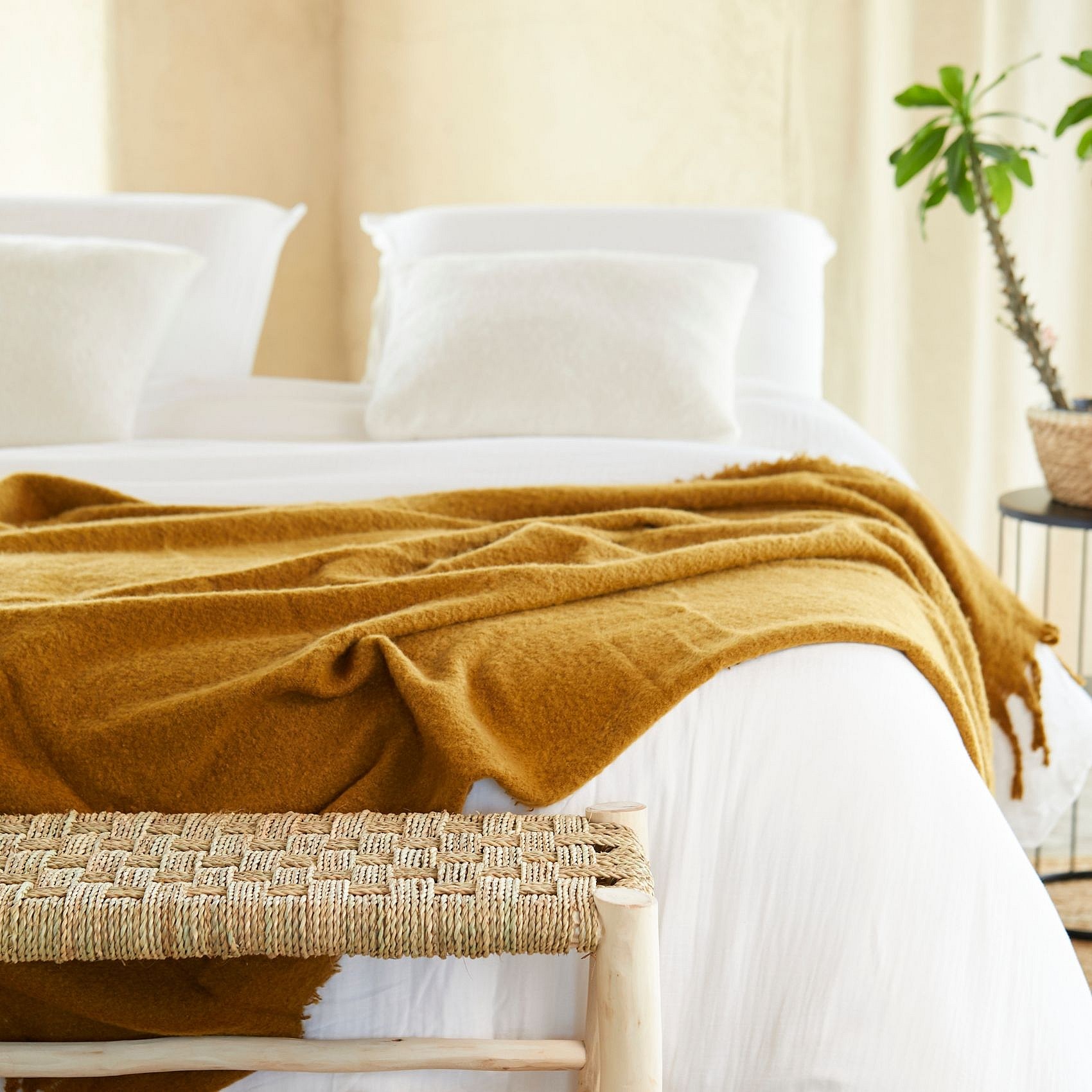 Parrure de lit uni craie 100% Percale Finition dentelle 220 x 240 cm