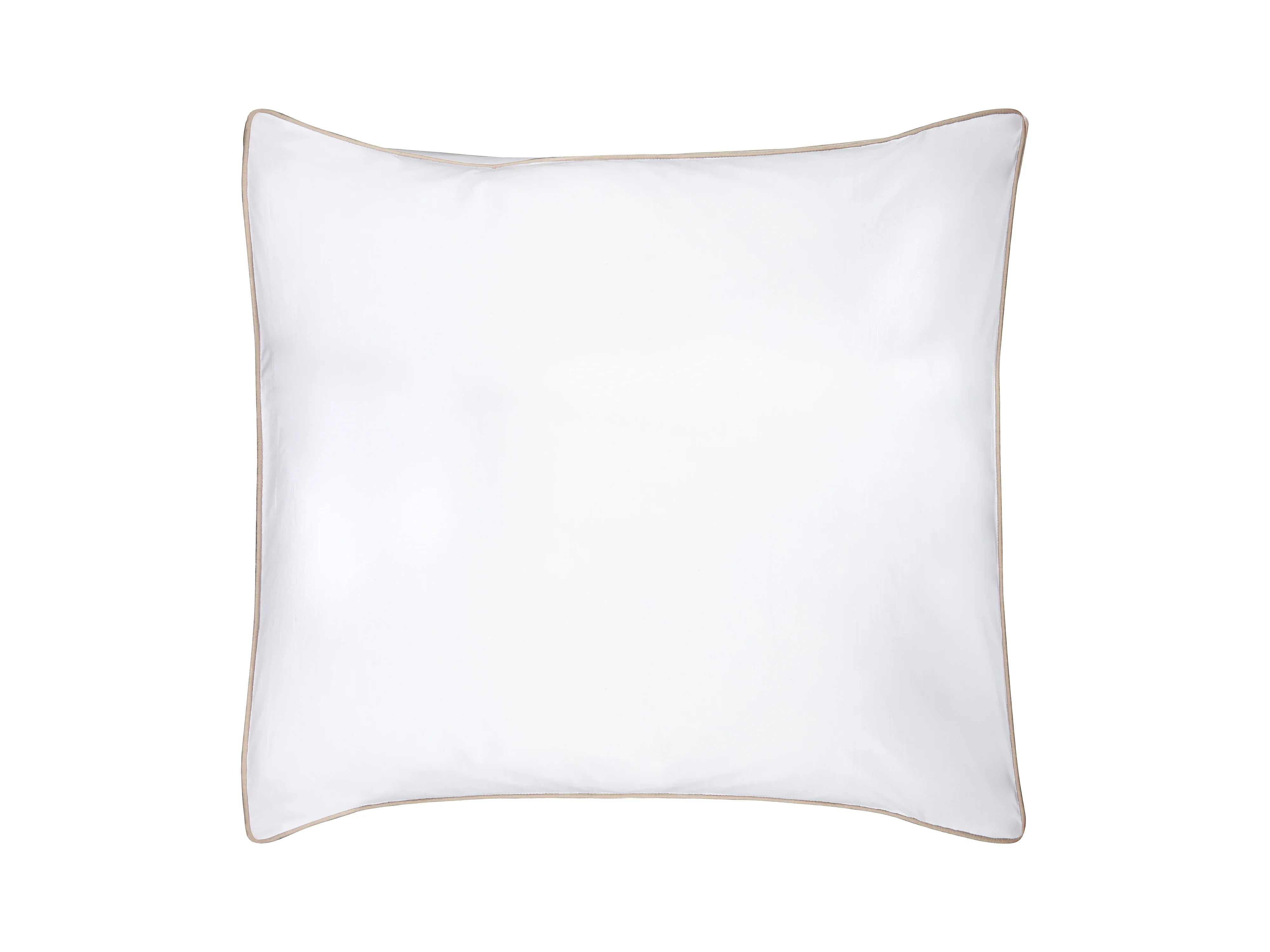 Parure de lit percale de coton 80 fils/cm² - Housse de couette 220 x 240 cm + 2 taies d'oreiller 63 x 63 cm - Blanc passepoil beige - AGAMI de PALACIO