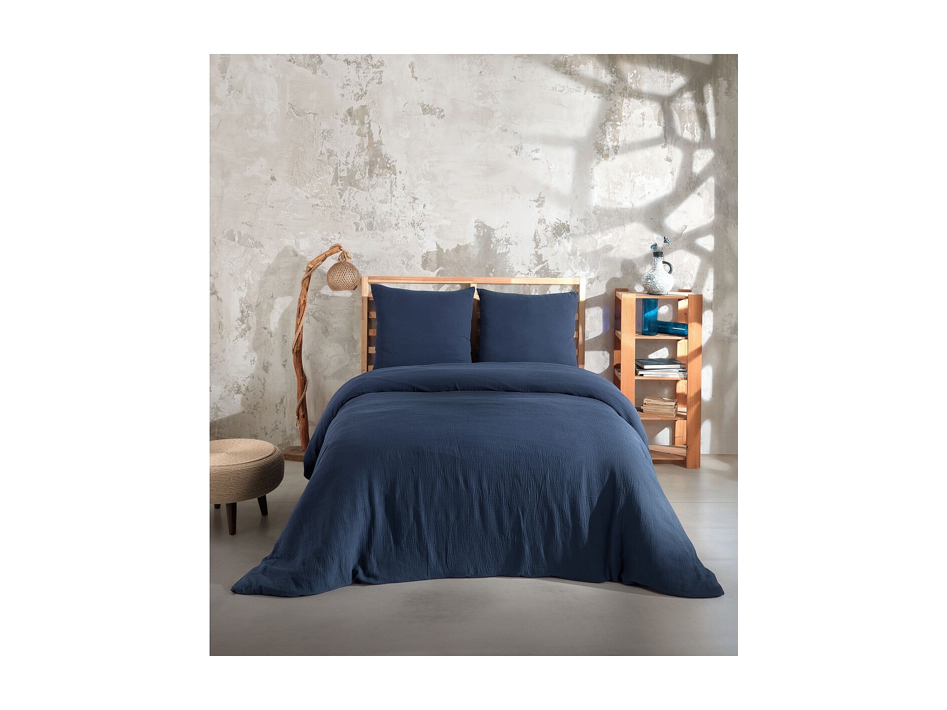Parure housse de couette et taies d'oreiller gaze de coton marine