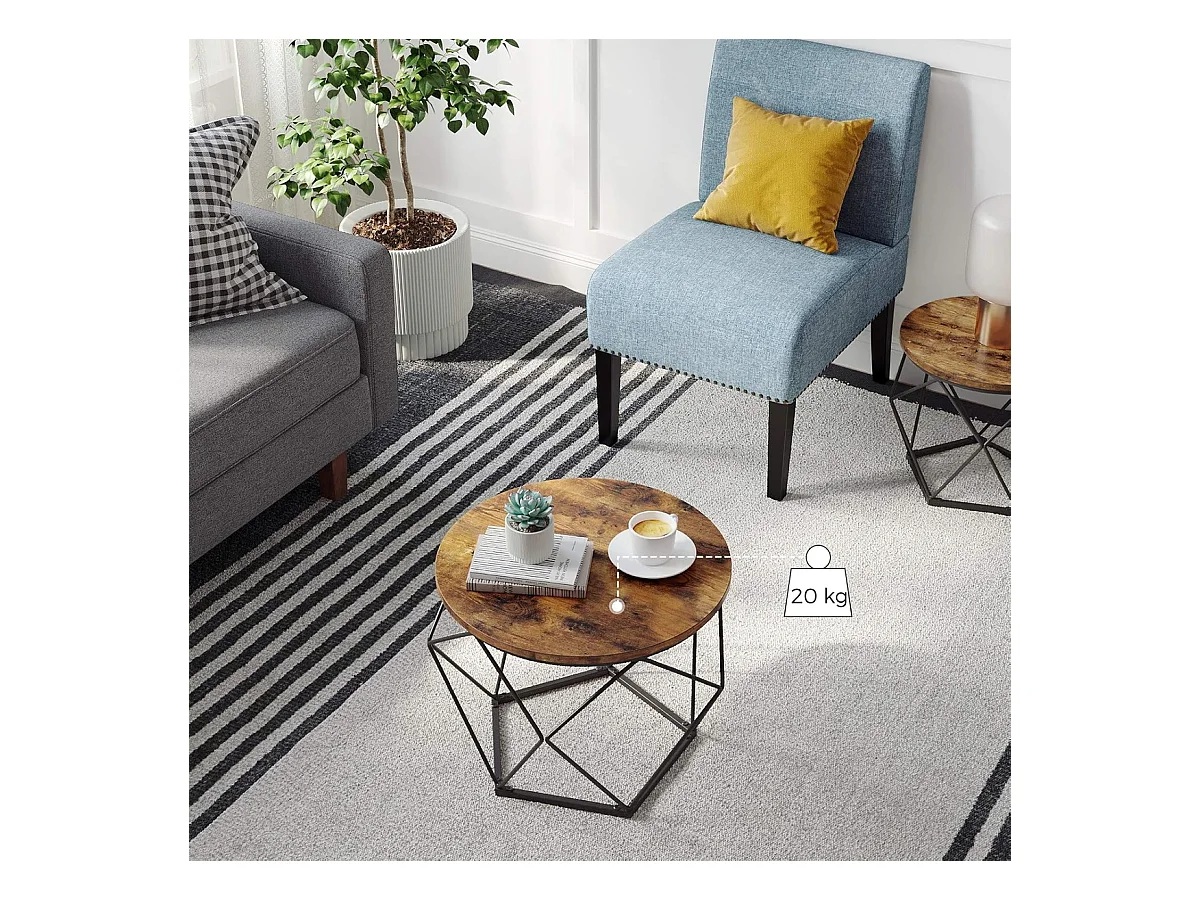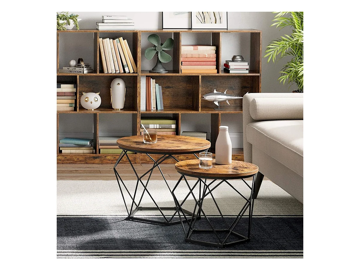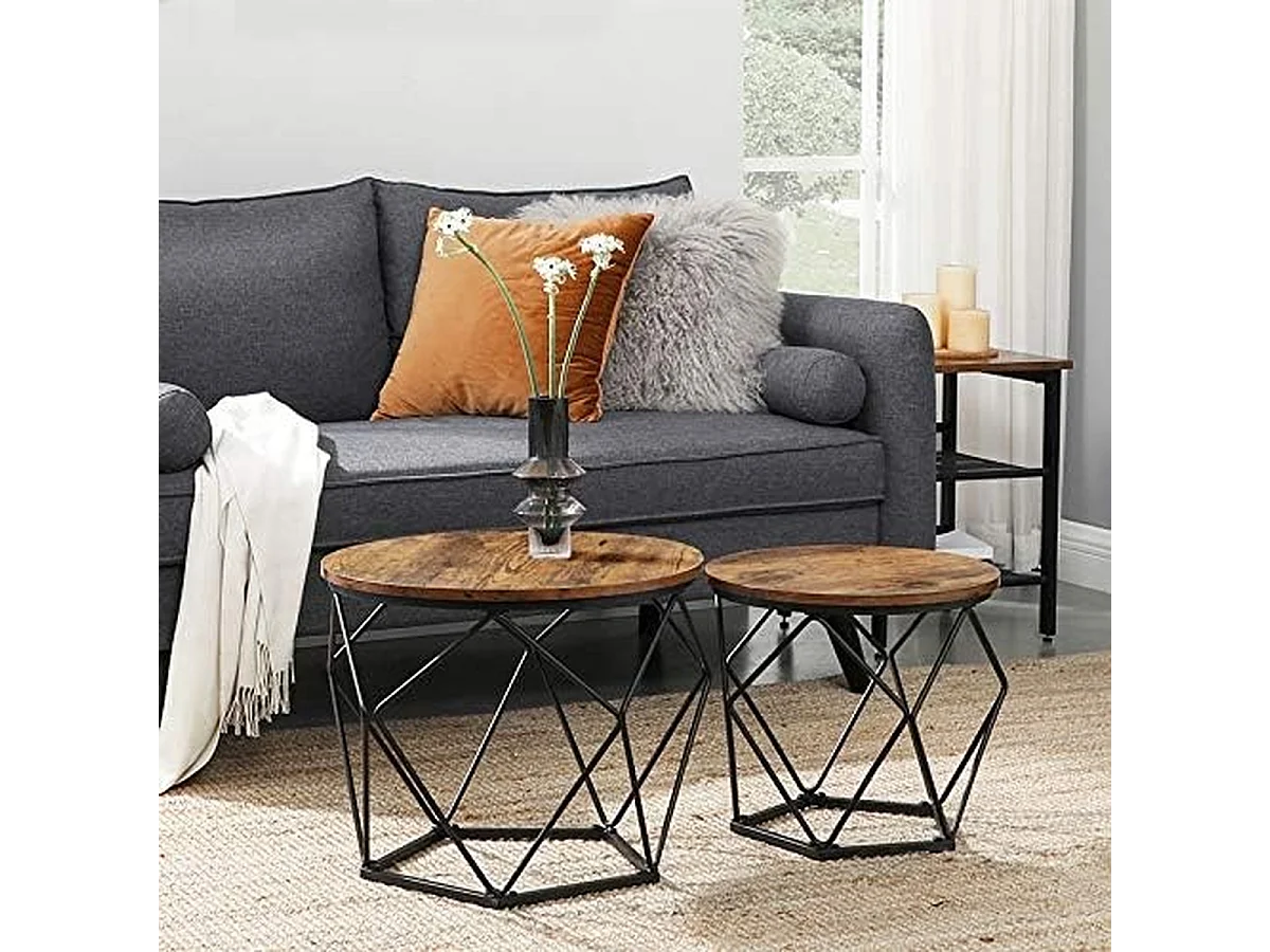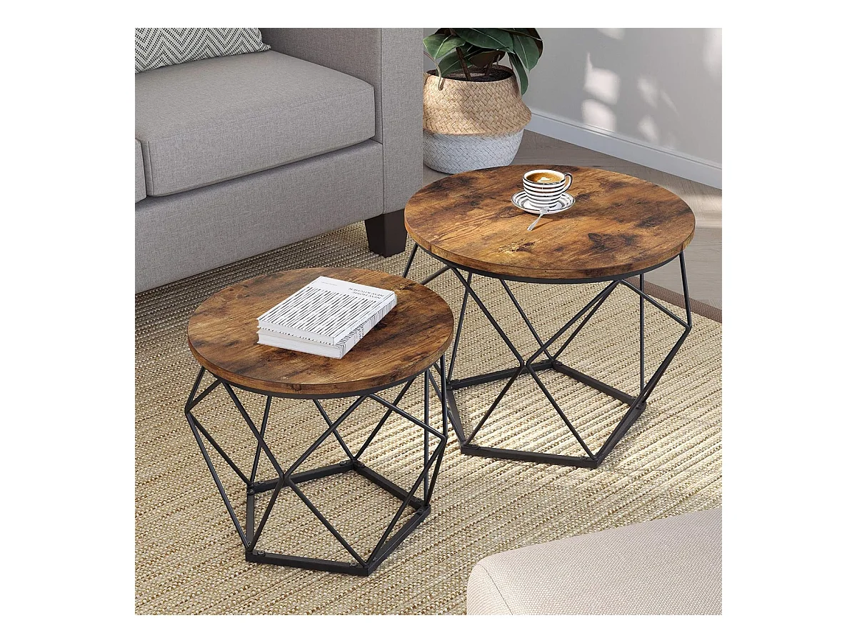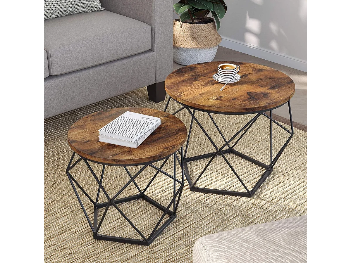 Parya Home 2 pcs tables d'appoint, aggloméré, acier, brun rustique + noir