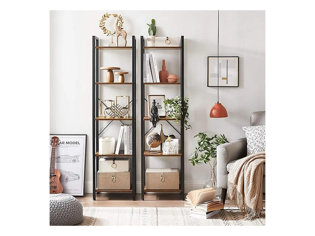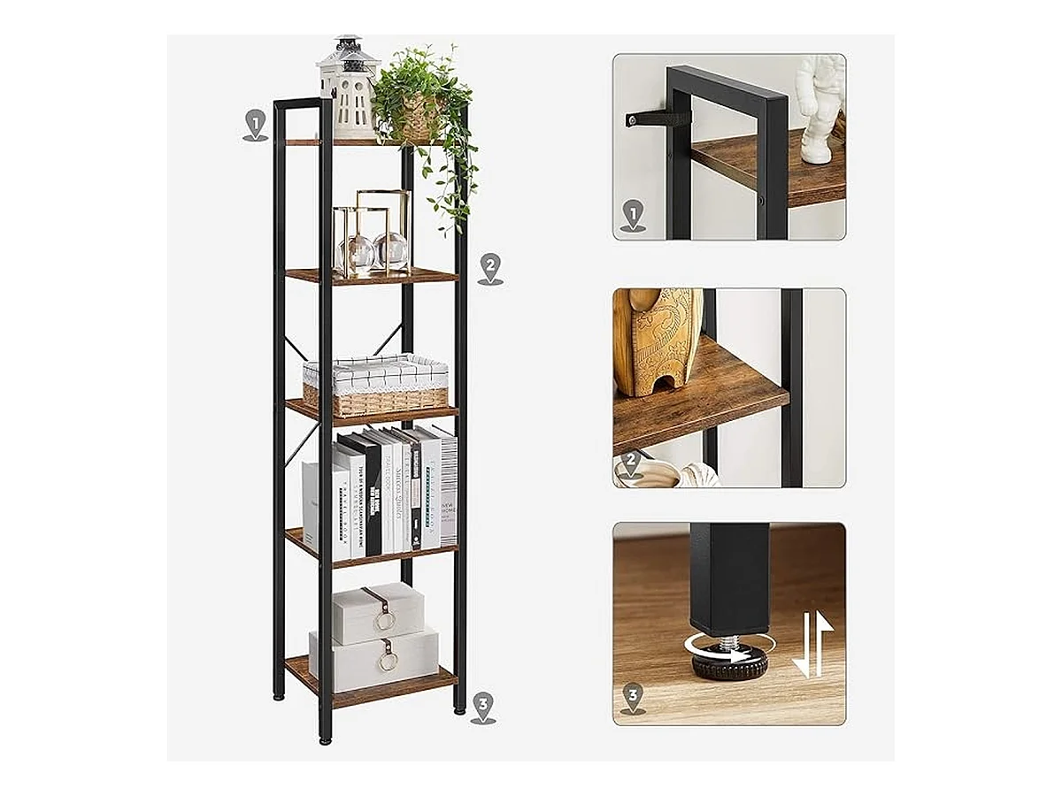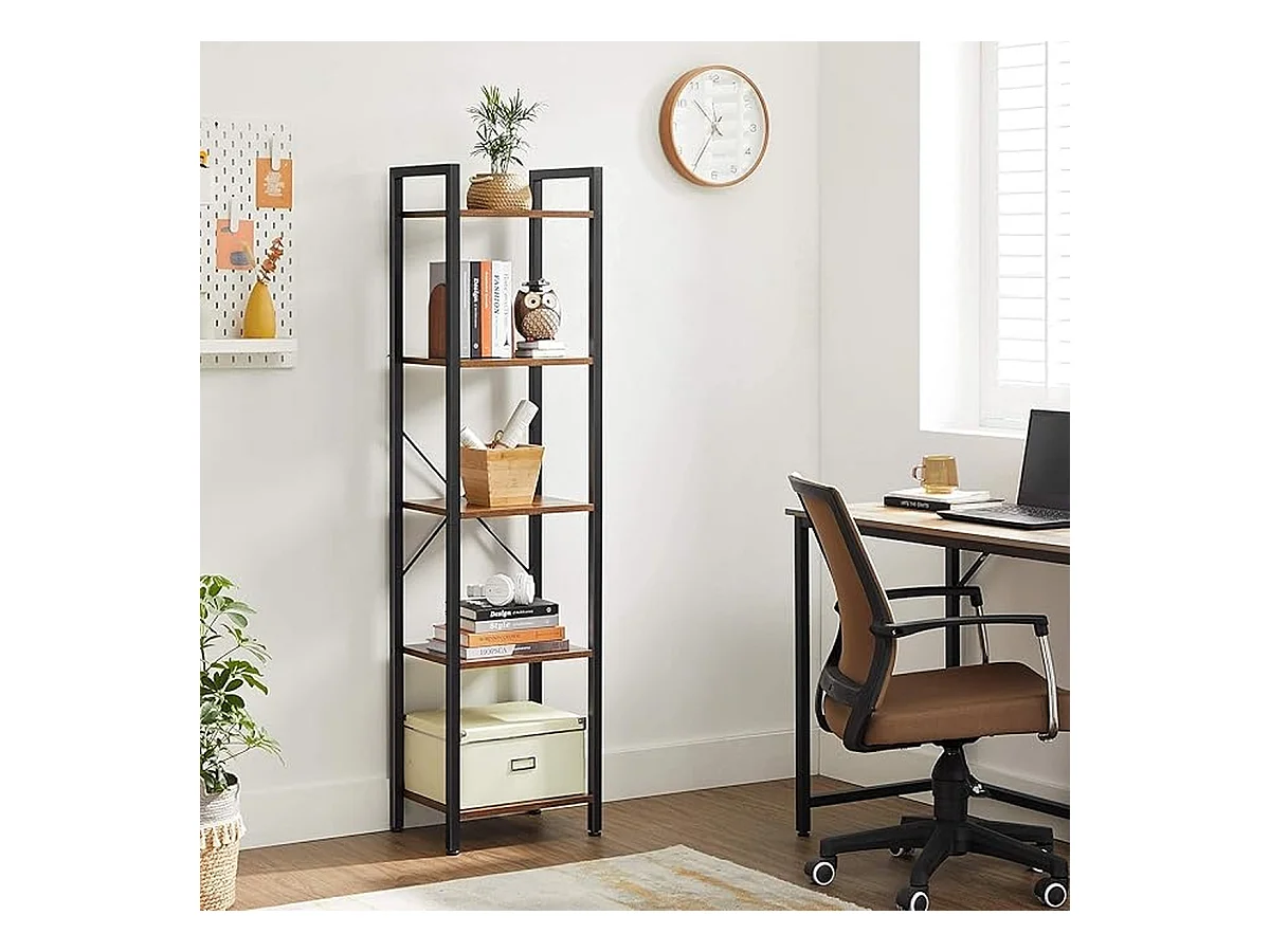 Bibliothèque SucceBuy Ouverte Étroite en Bois à 5 Niveaux de 135CM avec Étagère Réglable en Brun
