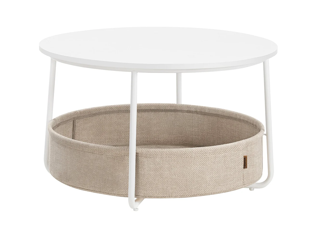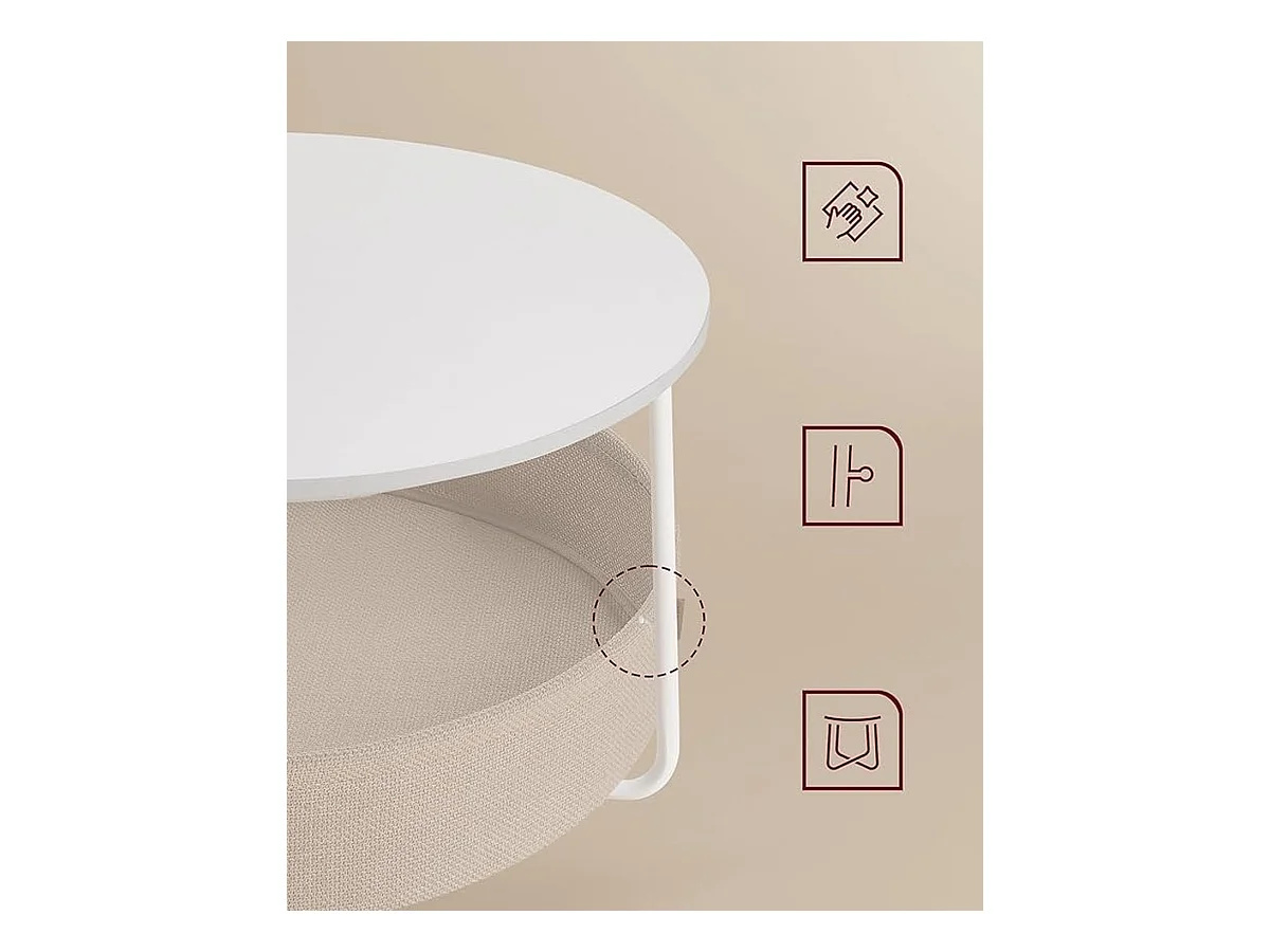 Parya Home table basse ronde, table d'appoint, table de salon avec panier en tissu, blanc mat camel brown