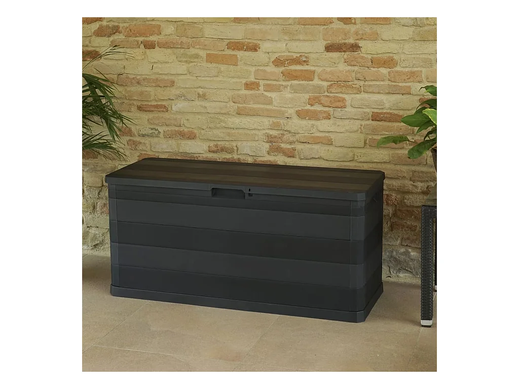 Dorian Boîte de rangement de jardin et roues noir 283L résine tressée