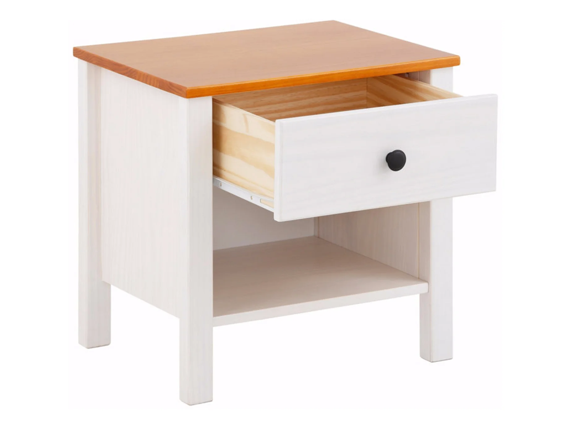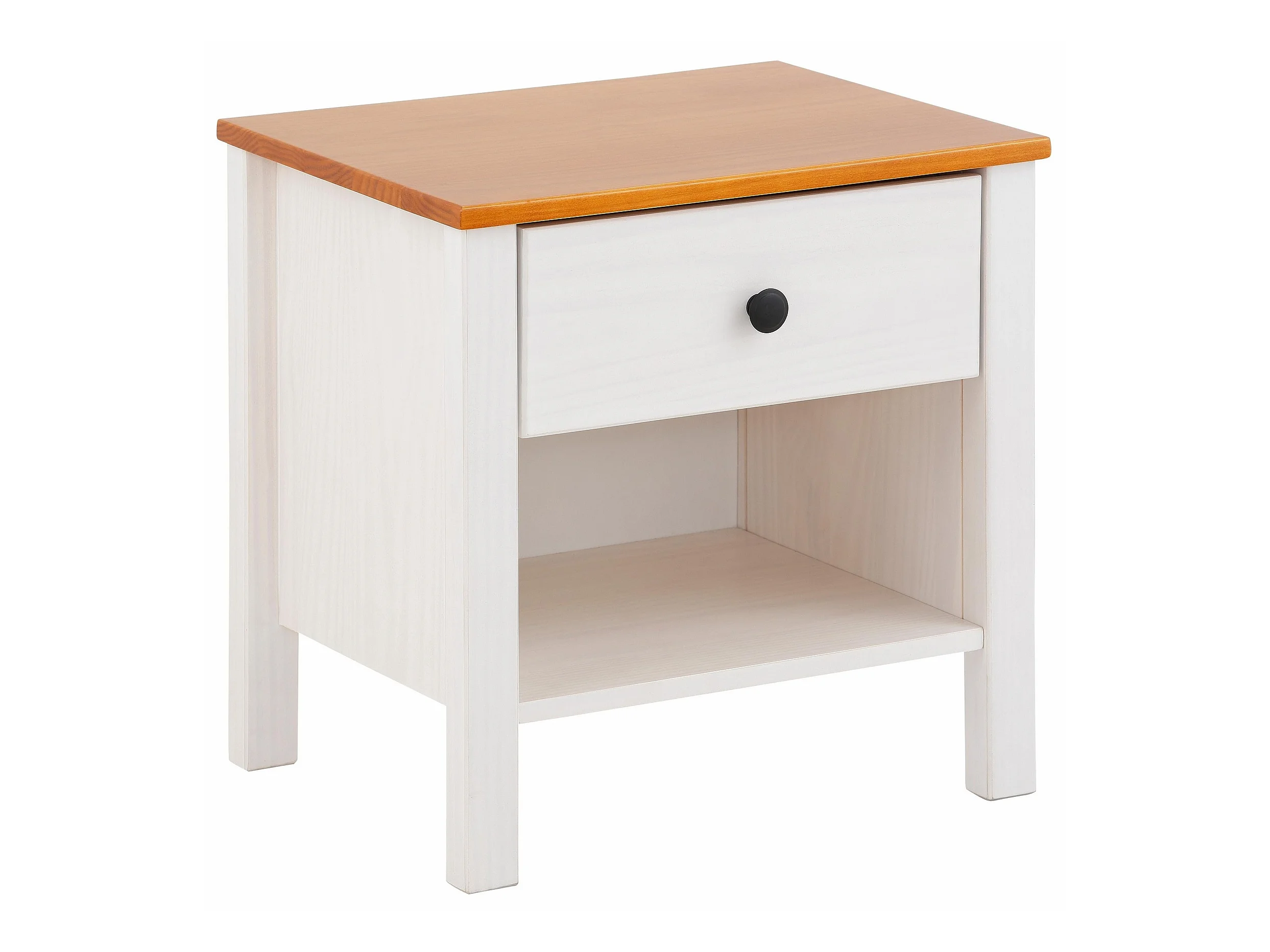 Paula | Table de nuit avec 1 tiroir en White / Honey Pine