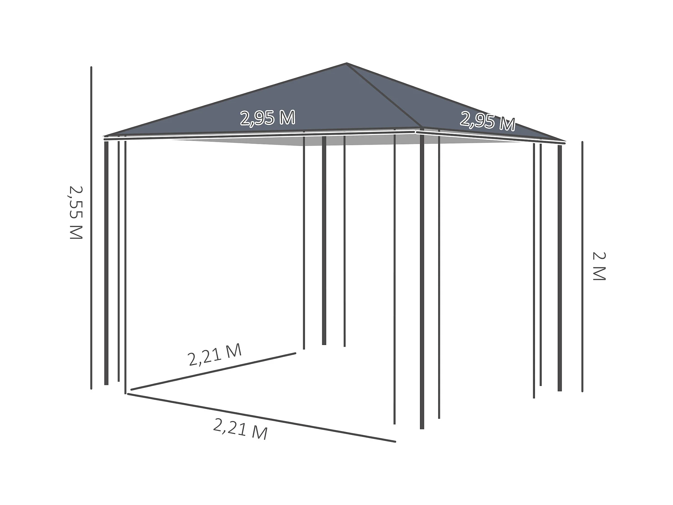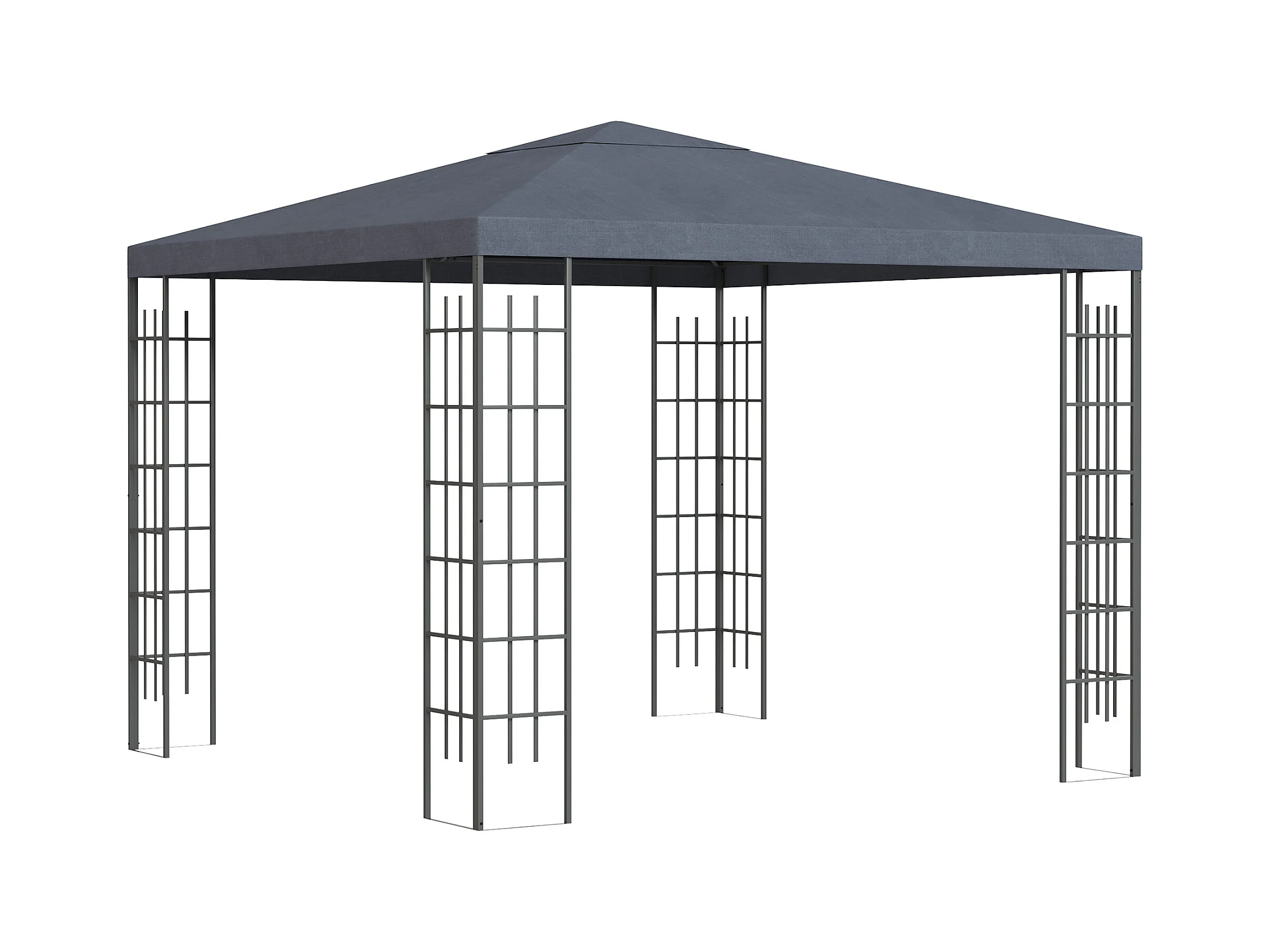 Pavillon de jardin 3x3m, structure en métal, toit en polyester, gris (295x295x255 cm)