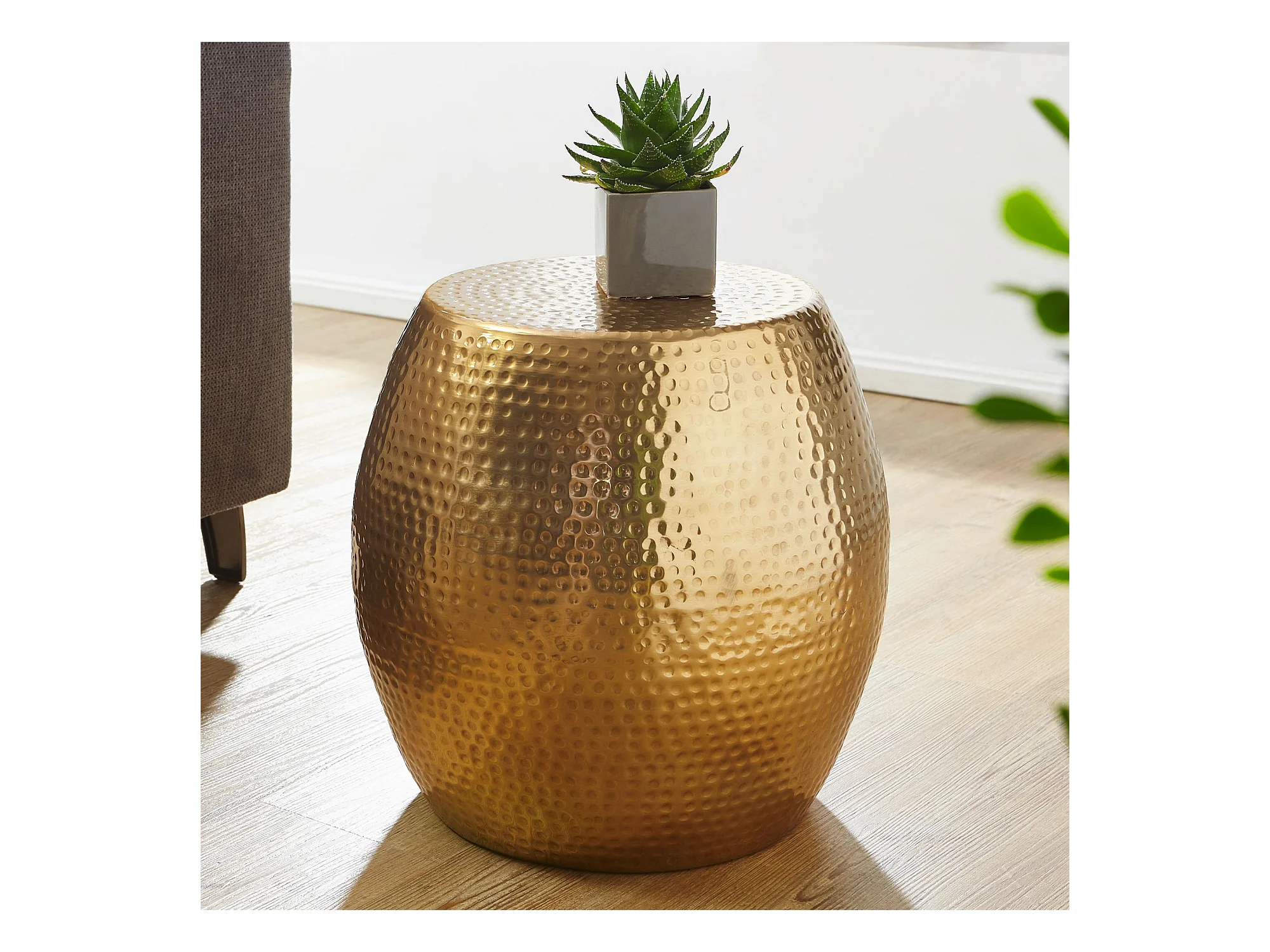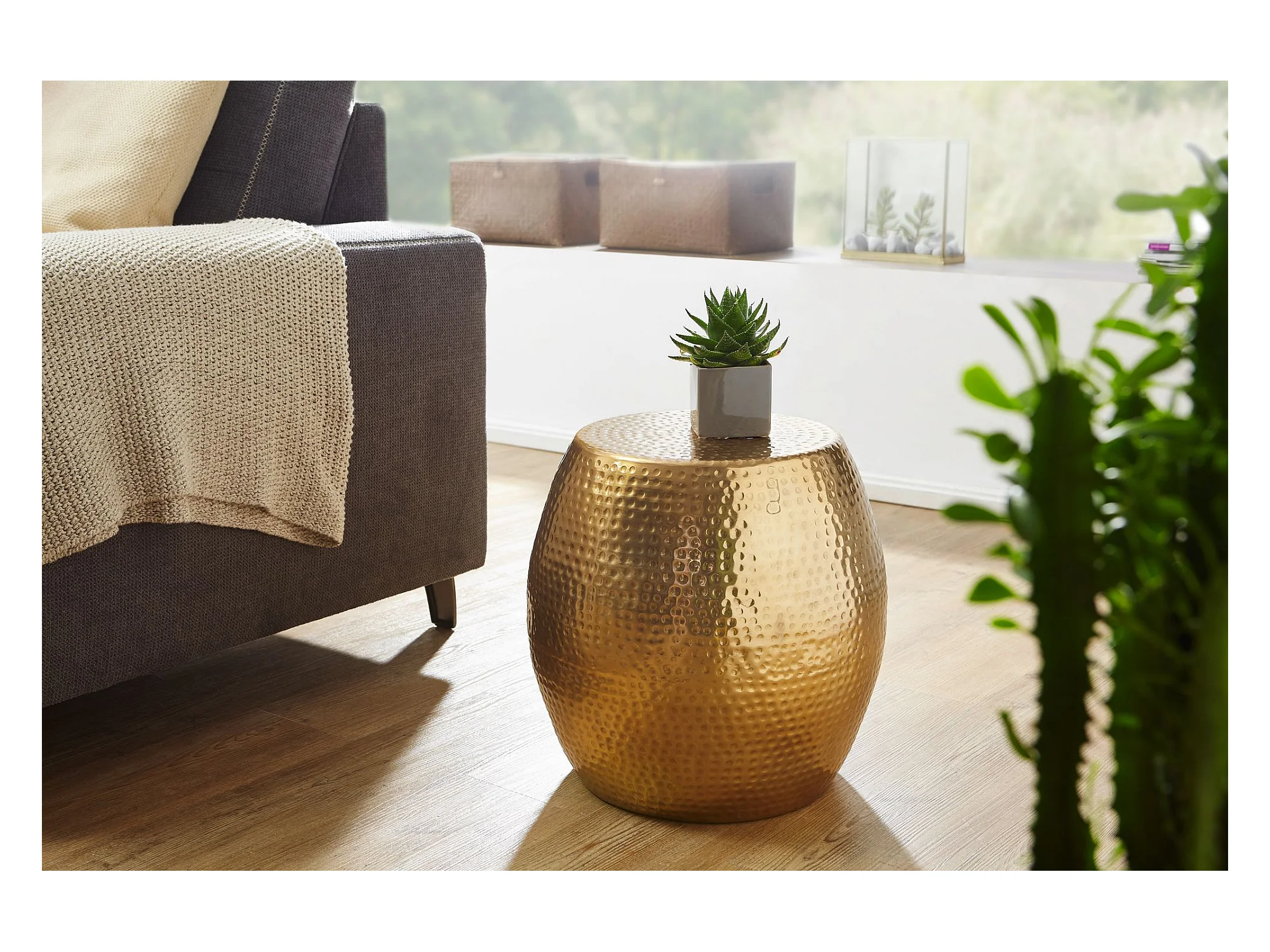 PETRO bijzettafel 42 x 42 x 42 cm ronde oosterse aluminium gouden tafel | Moderne metalen archieftafel | Antischisch Schmal | Kleine Abstelltische drilboor