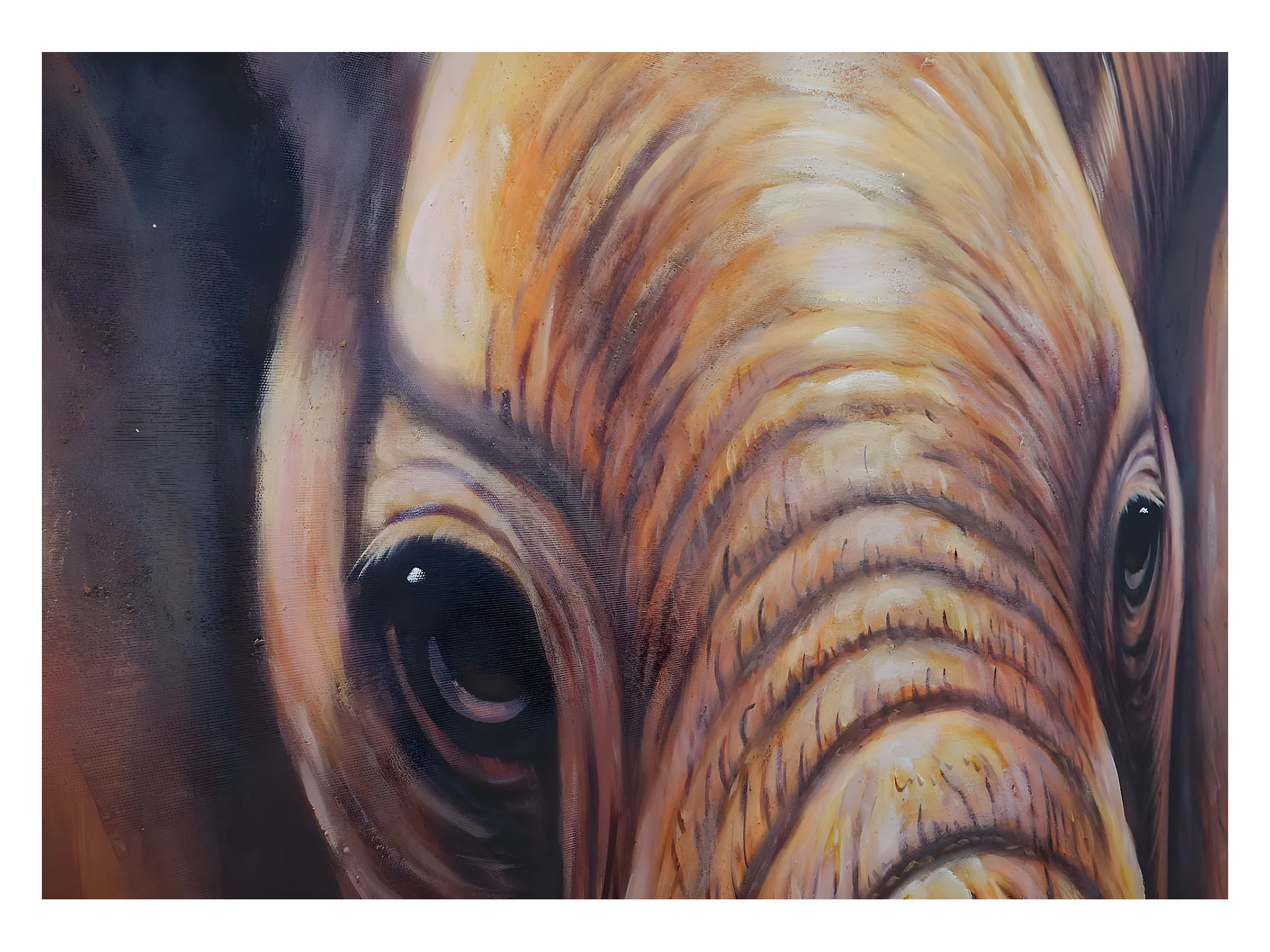 Peinture à l'huile gros plan éléphant peinte à la main