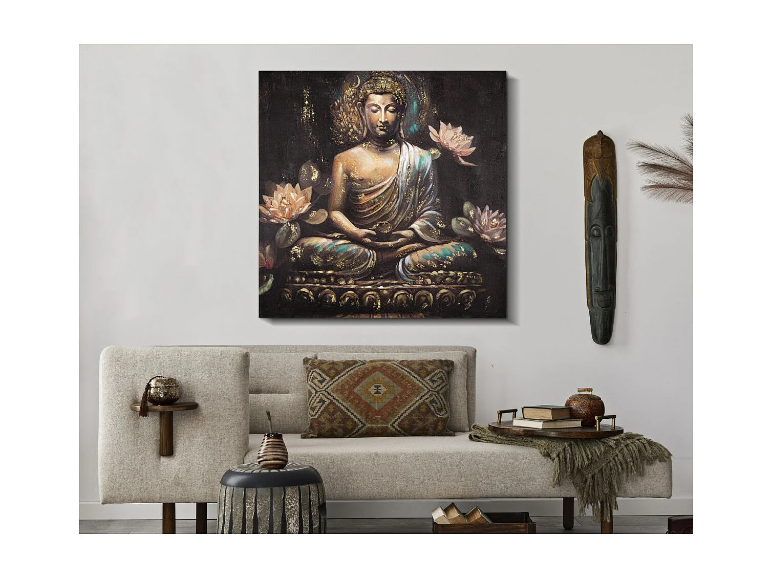 Toile Imprimée Déco "Bouddha Prière" 100x100cm Multicolore
