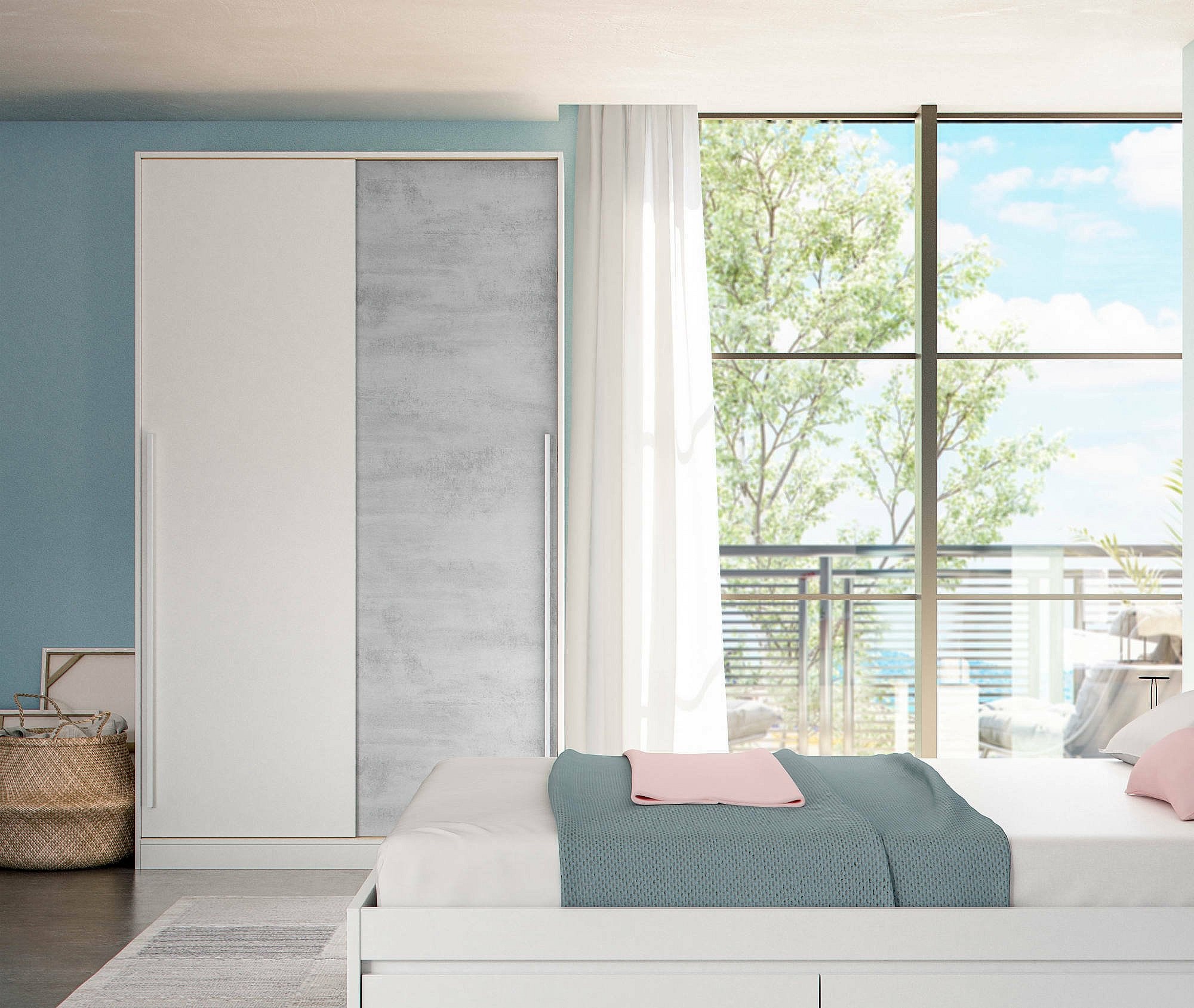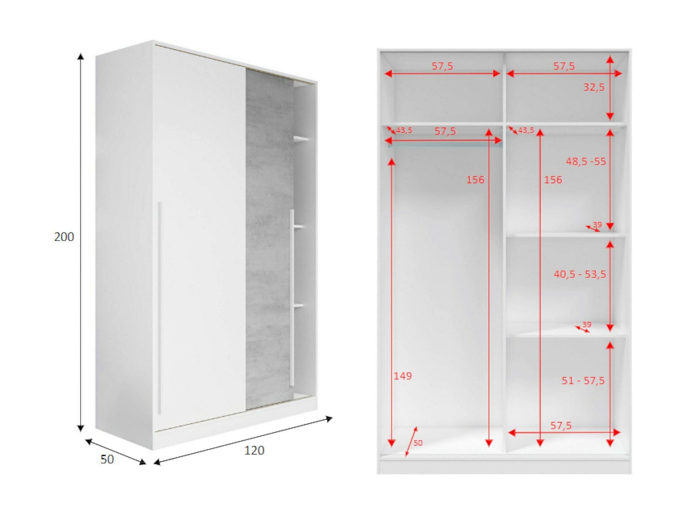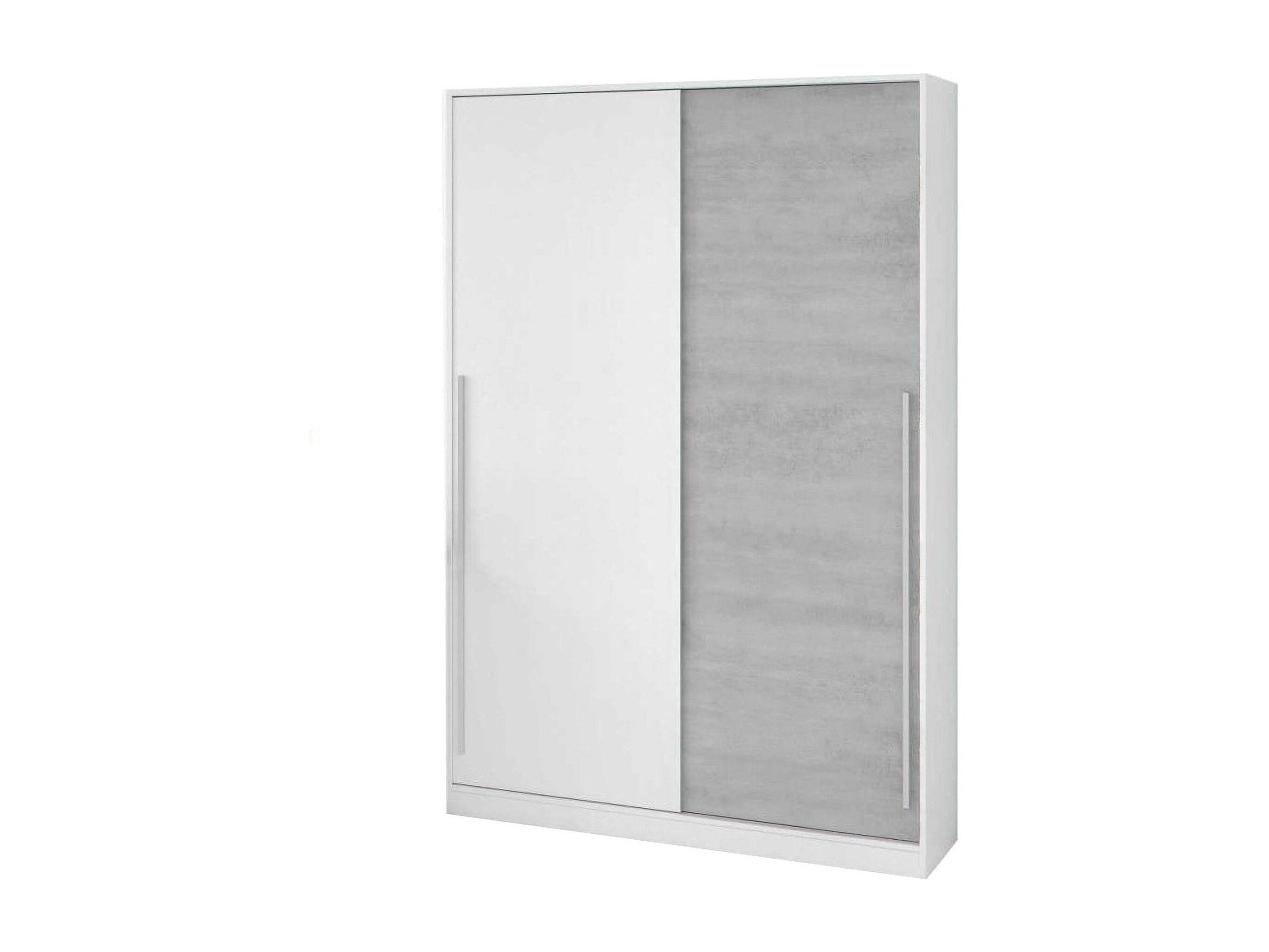 Dcelesi Armoire, Armoire de Chambre avec 2 portes coulissantes, Armoire avec tringle à vêtements et 3 étagères, 120x50h200 cm, Ciment et Blanc