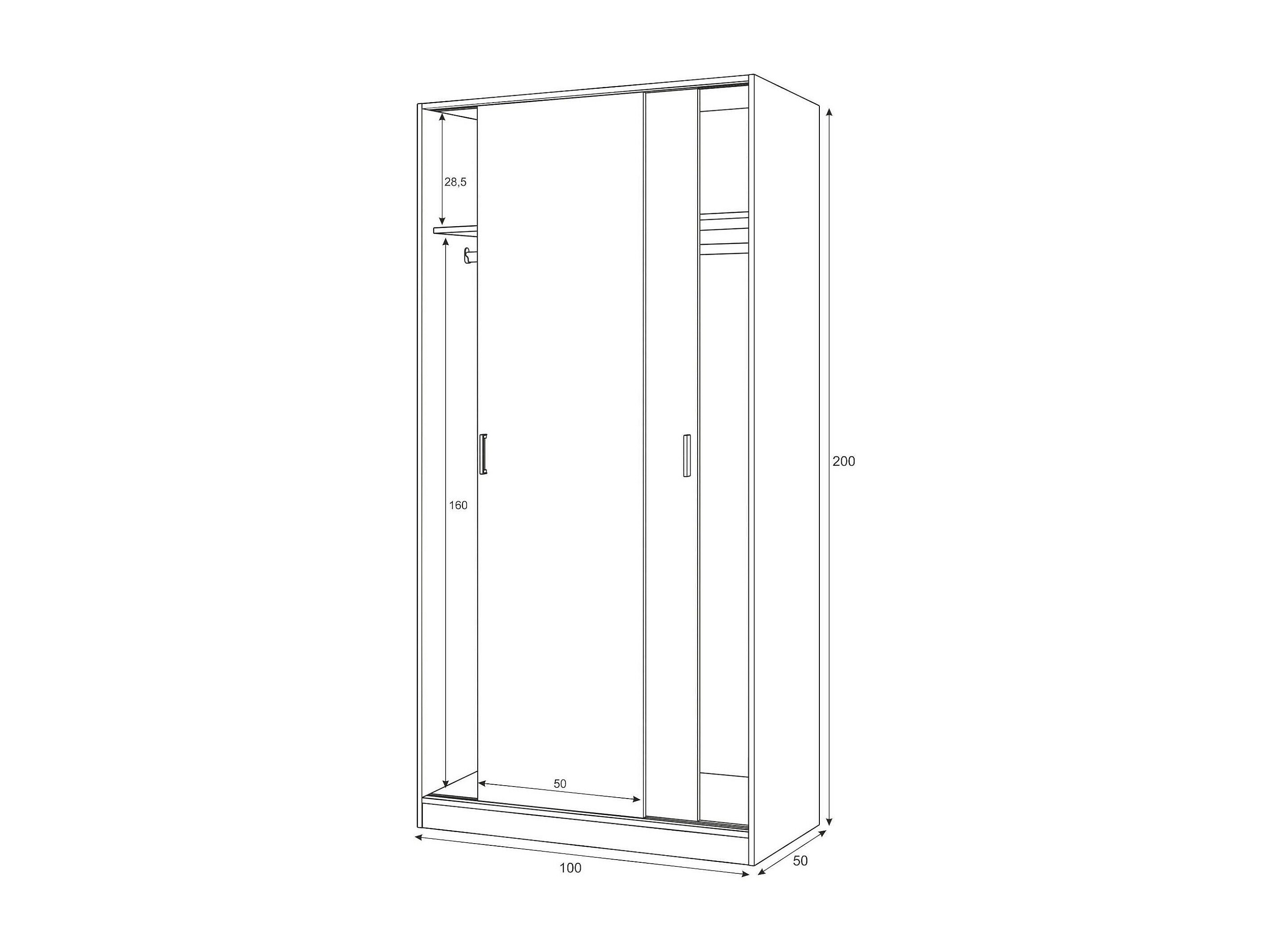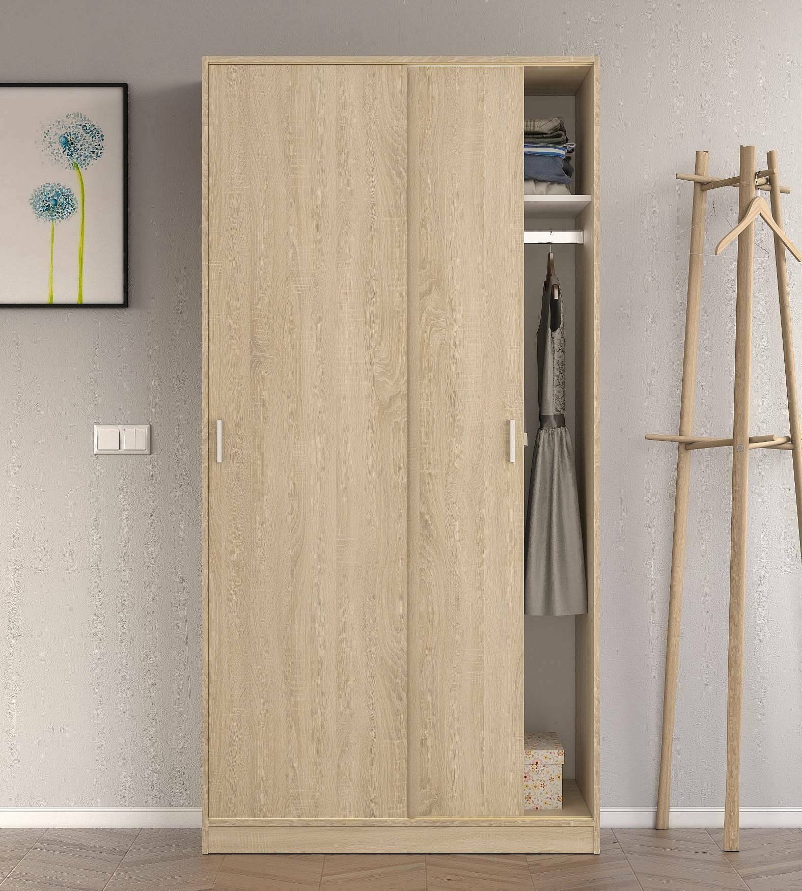 VESTIAIRE - Armoire de chambre à 2 portes coulissantes, Armoire avec étagère et barre de cintre, cm 100x50h200, Chêne.