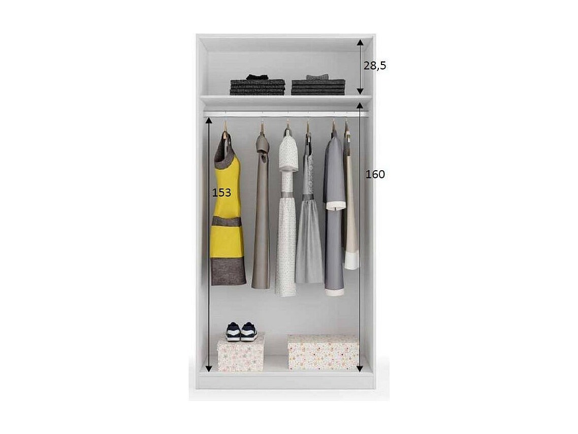 STRUCTURE ET UTILISATION - Armoire complète avec deux portes coulissantes avec poignées, à l'intérieur une barre à vêtements et une étagère fixe, grâce à l'organisation interne de ses espaces, elle offre un grand espace de rangement - Toute la structure du meuble avec des détails vintage est parfaite pour meubler une chambre double, une chambre d'enfants ou une chambre d'amis de manière peu encombrante - La tringle à vêtements vous permet de ranger vos vêtements et costumes de manière ordonnée.