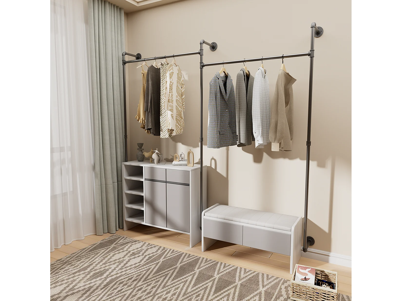 Penderie vêtements pour dressing mural portant à vêtement industriel suspendu armoire ouverte design en tubes 205x190cm