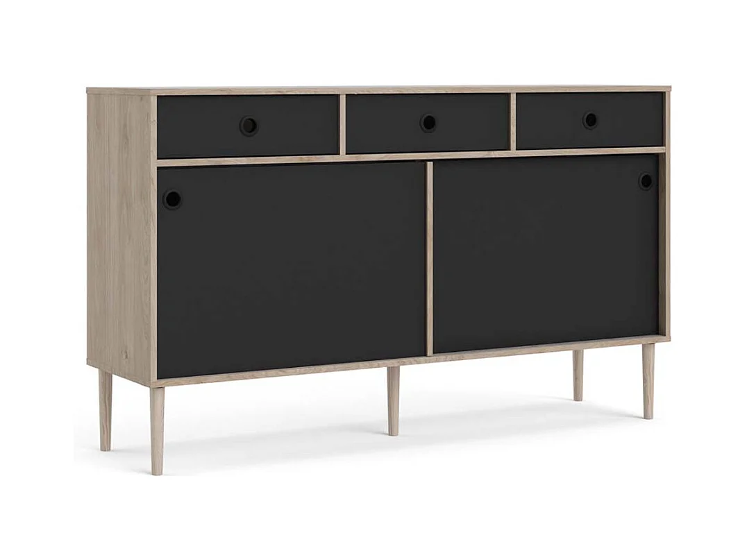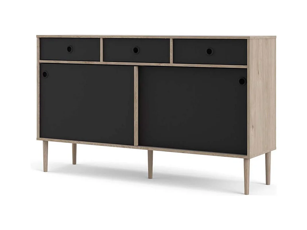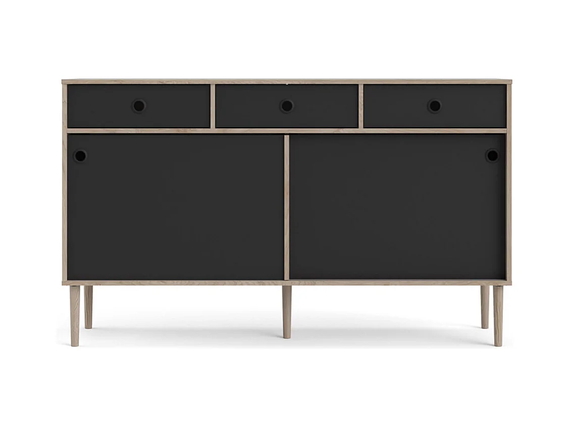 Penny Buffet, 2 portes coulissantes et 3 tiroirs, imitation chêne Hickory, noir mat.