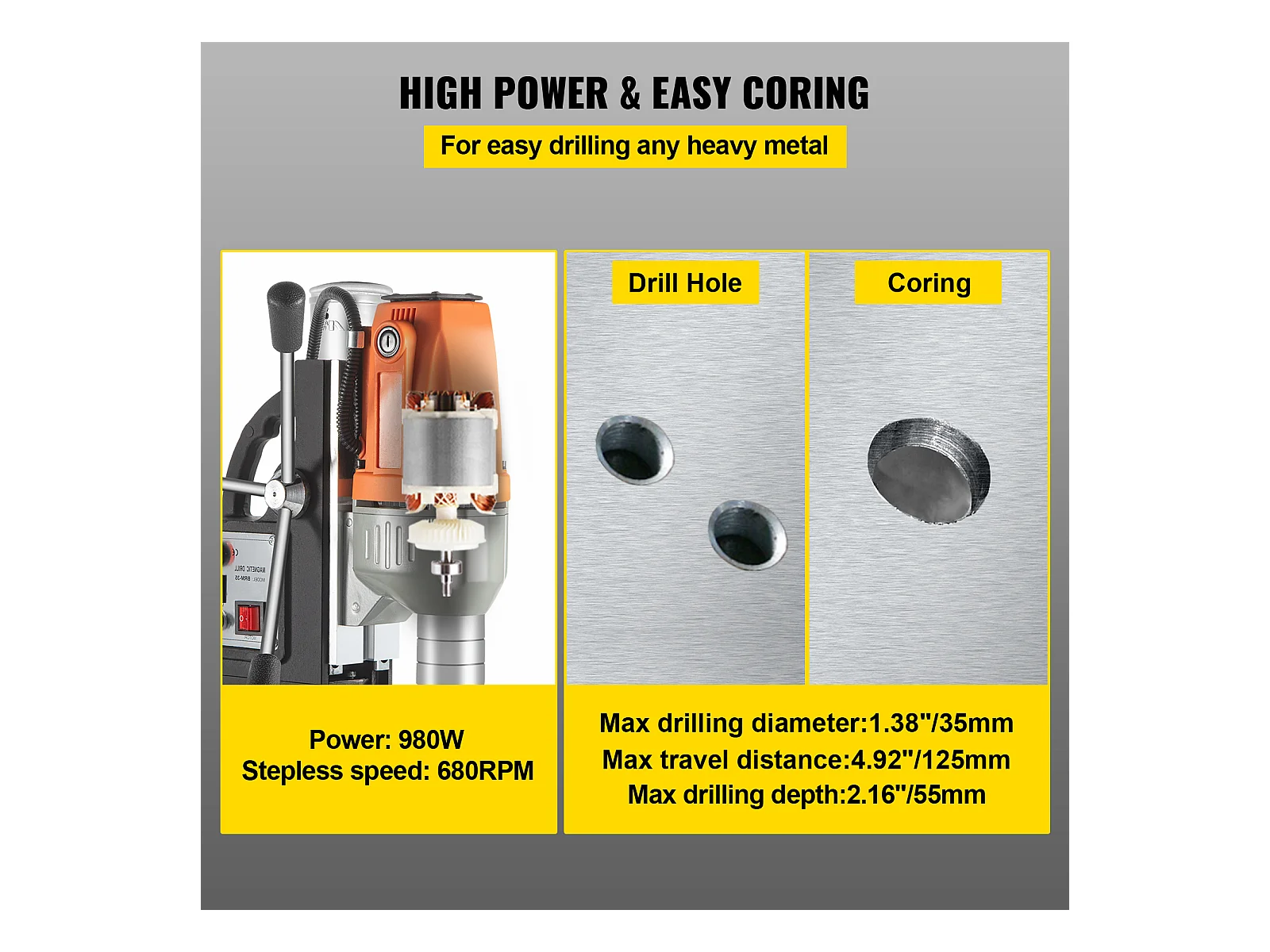 Perceuse Magnétique SucceBuy 240V 980W 35mm, Perceuse Magnétique Électromagnétique Industrielle