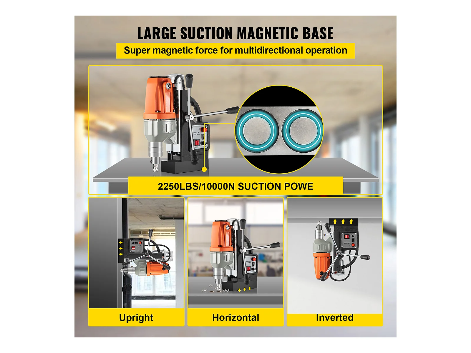 Perceuse Magnétique SucceBuy 1550 W, 2922 lbf, Perceuse Magnétique Portative à 500 tr/min
