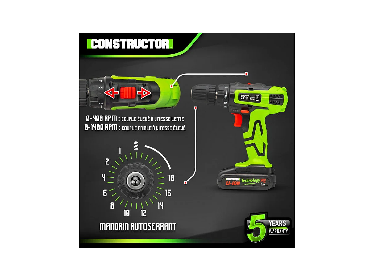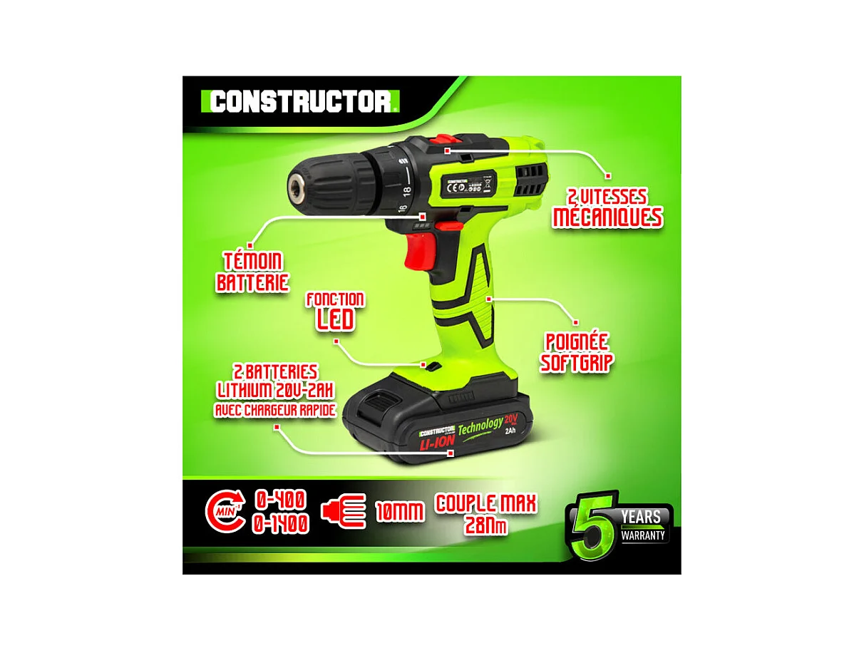 Perceuse-visseuse Constructor 20V Lithium 2 batteries
