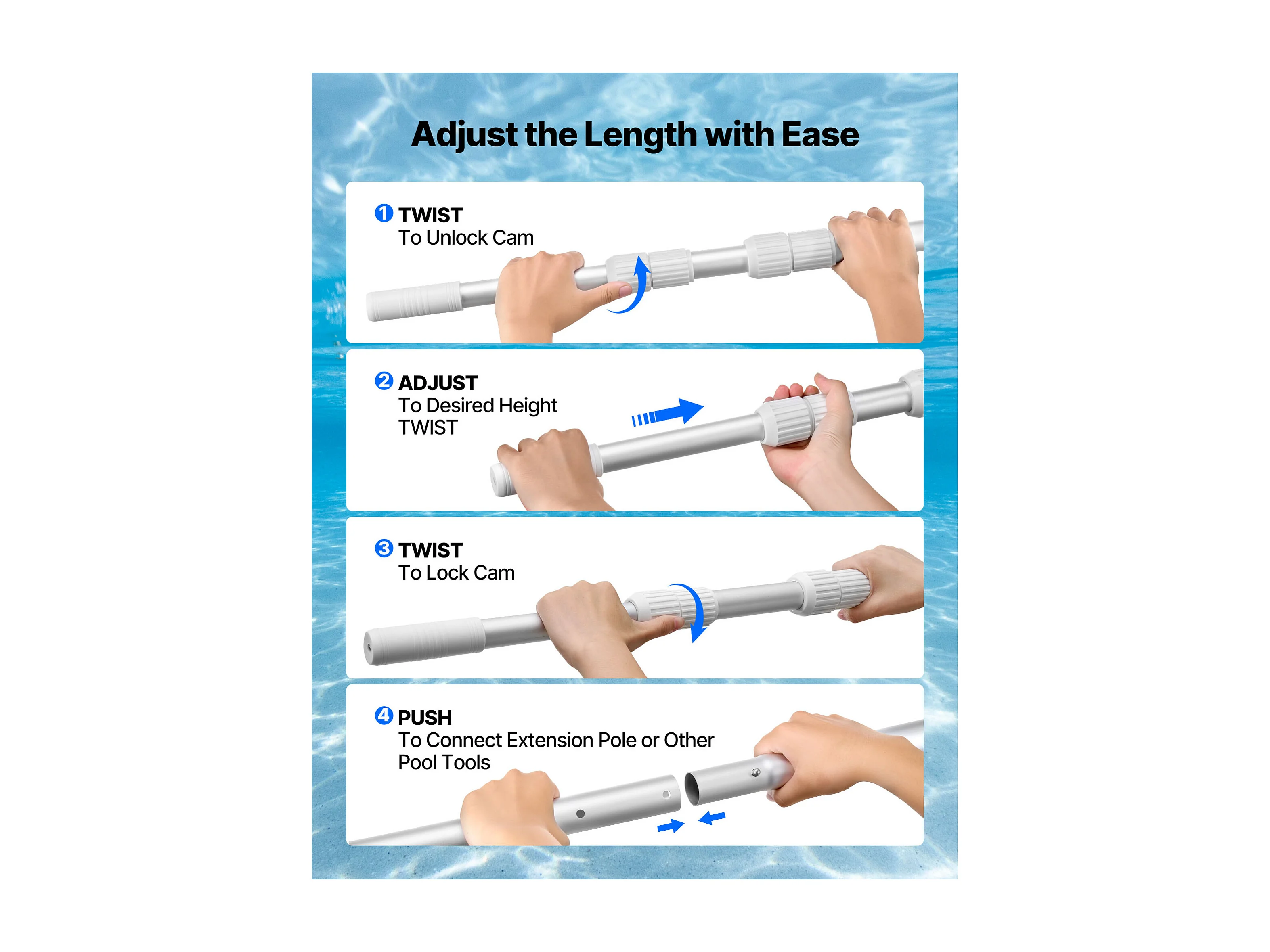 Perche de Piscine Télescopique SucceBuy de 1 à 4,6 m, Poteau de Piscine Professionnel Réglable avec 2 Rallonges, Bâton de Nettoyage en Alliage d’Aluminium