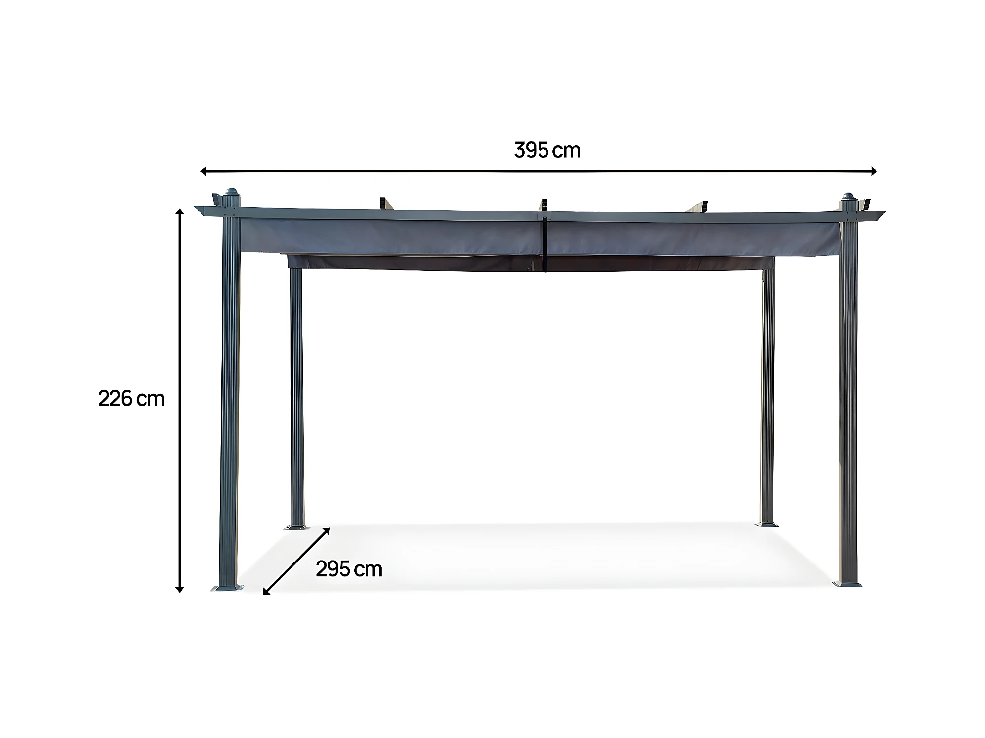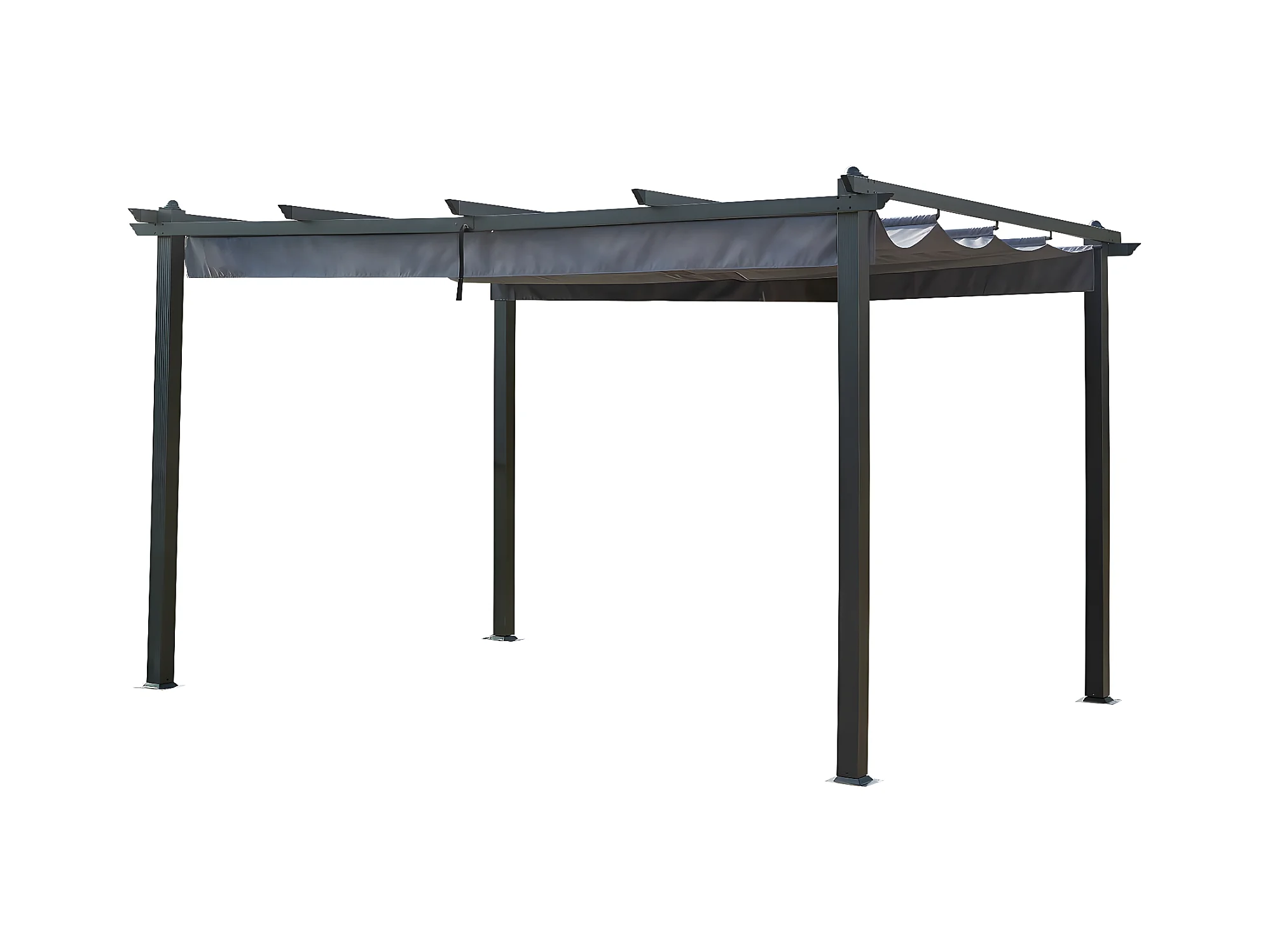 Pergola auto-portée 3 x 4 m avec toile rétractable grise NILA