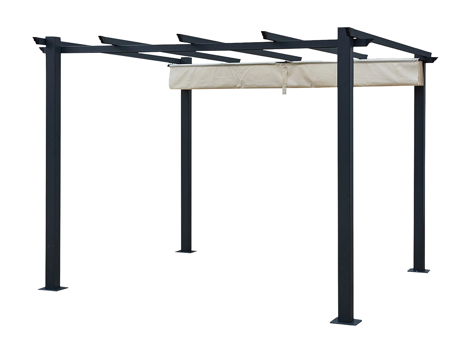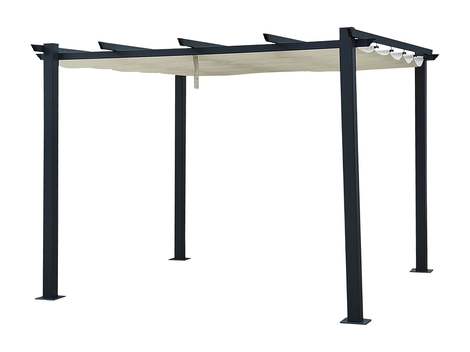 Pergola Extérieure SucceBuy 305 cm x 305 cm avec Auvent Rétractable Beige