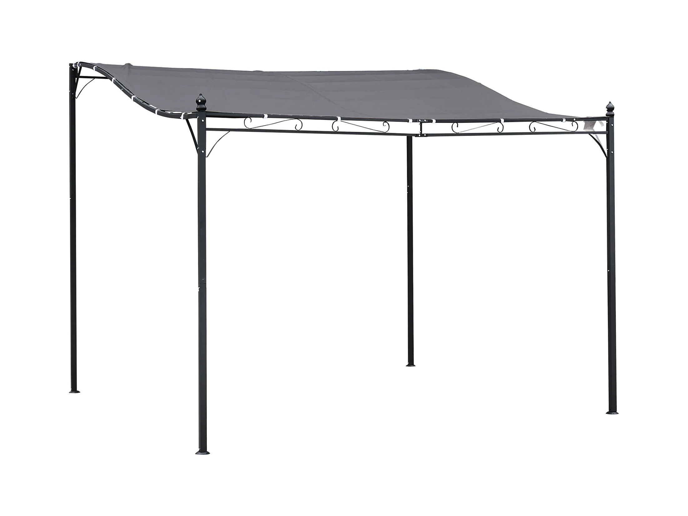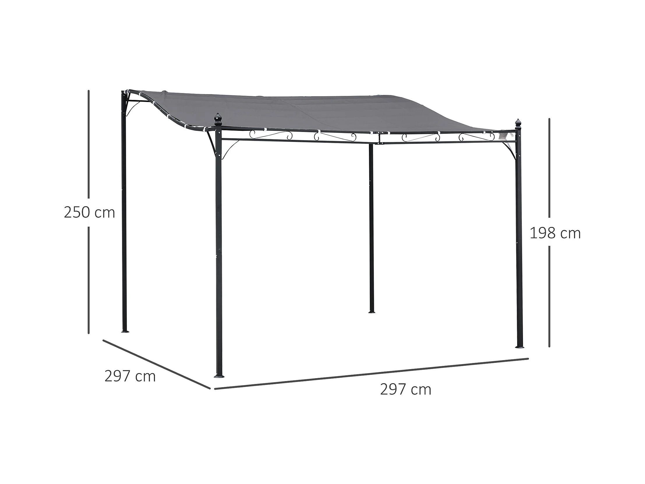 Pergola avec toit courbé, métal et polyester, gris (297x297x250 cm)