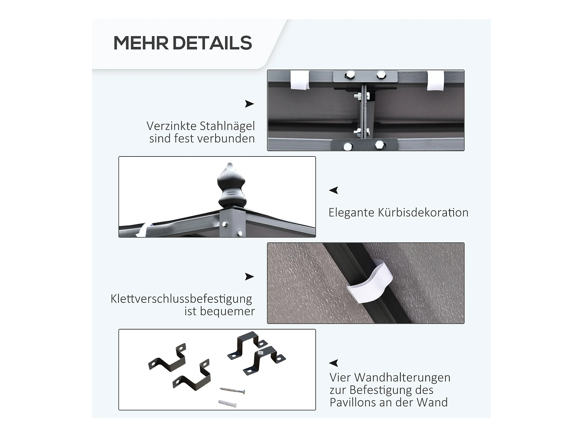 Pavillon de jardin 3x3m, structure en métal, toit en polyester, gris (295x295x255 cm)