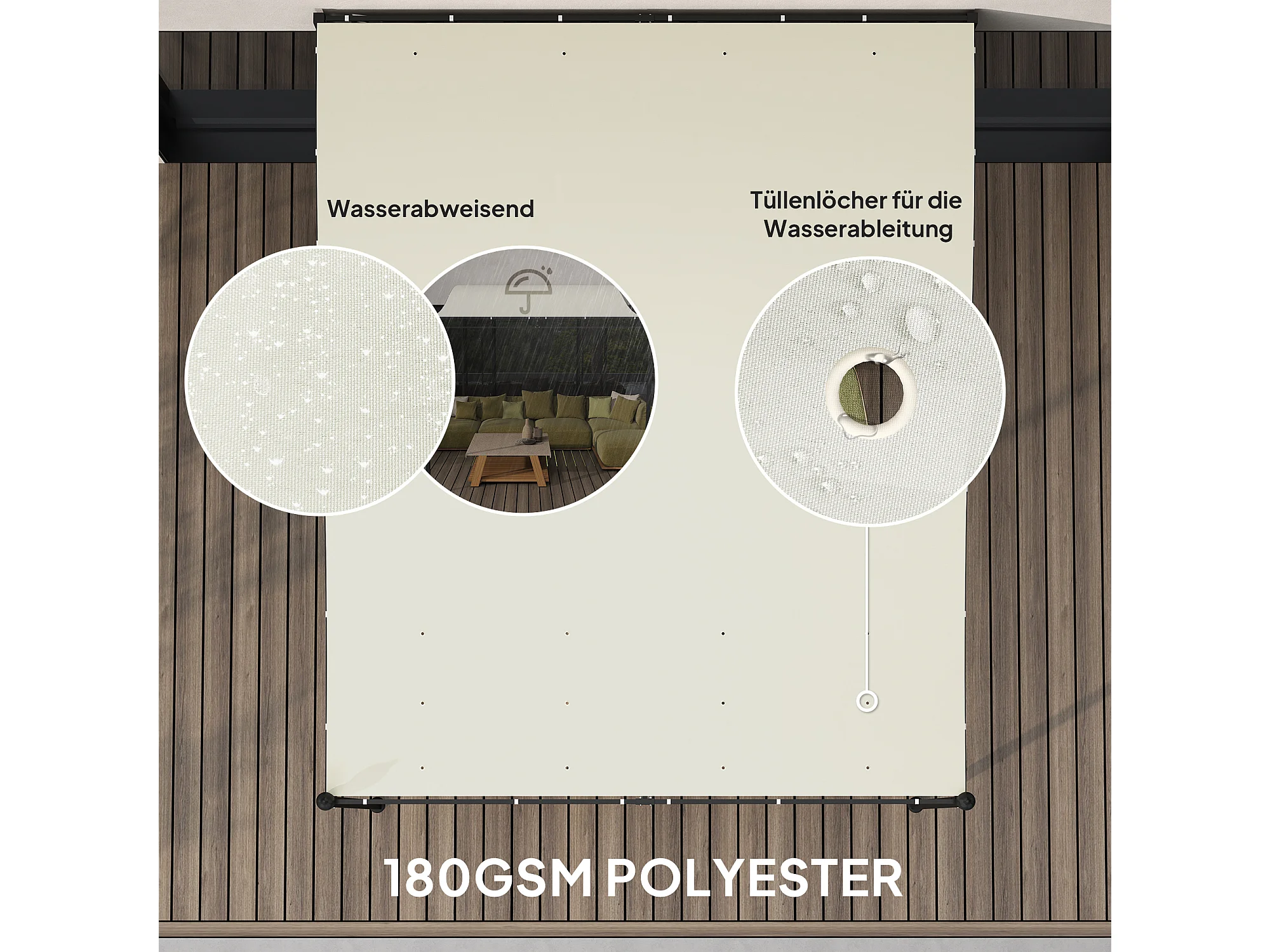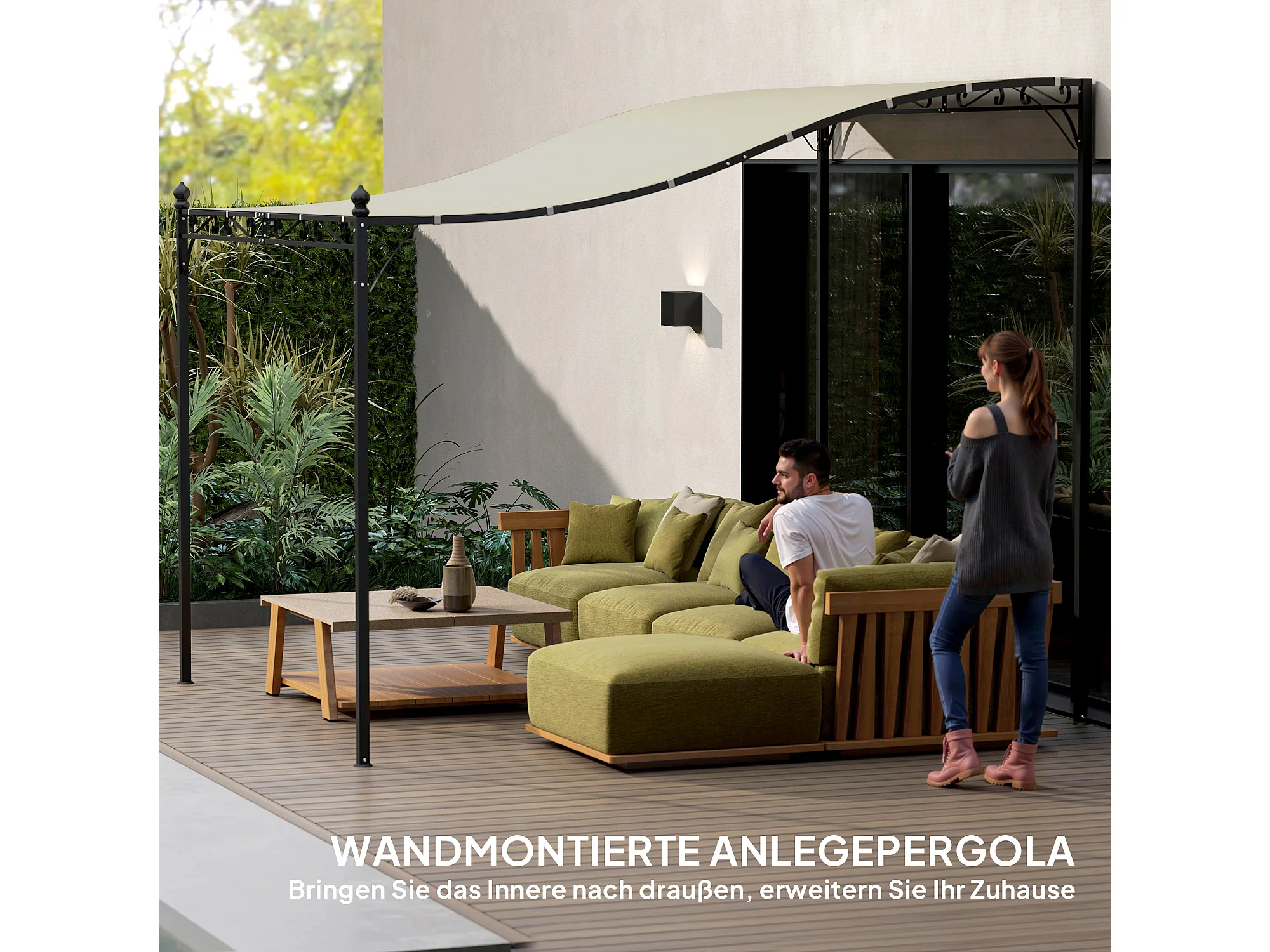 Pergola avec toit imperméable, structure en métal, couleur crème (248x298x250 cm)