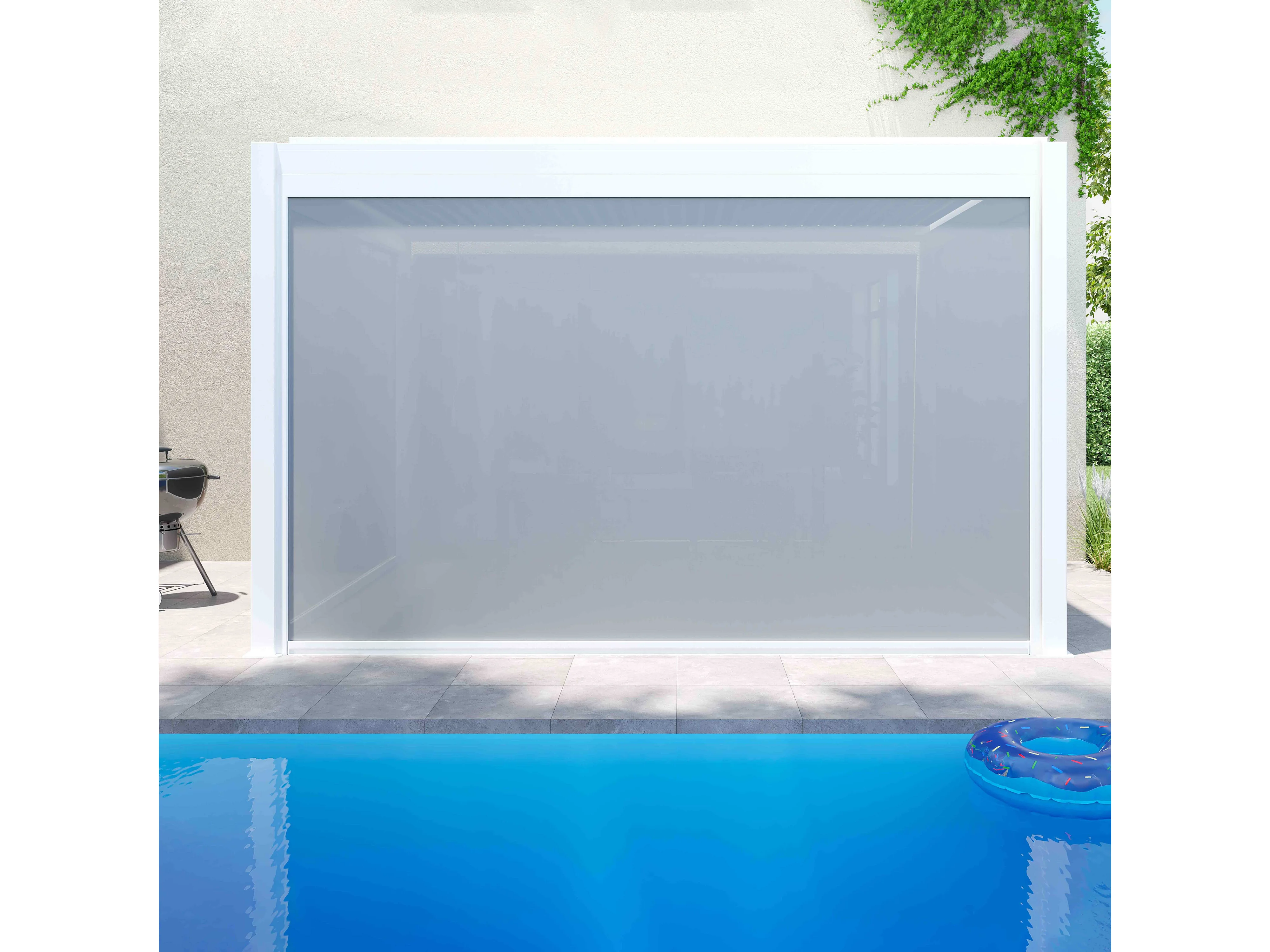 Pergola bioclimatique 3x4m autoportée avec 1 store 3,73 x 2,34 m blanc