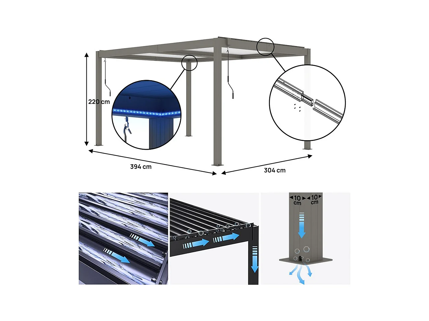 Pergola bioclimatique avec led "Windsor premium" en aluminium 3 x 4 - Taupe