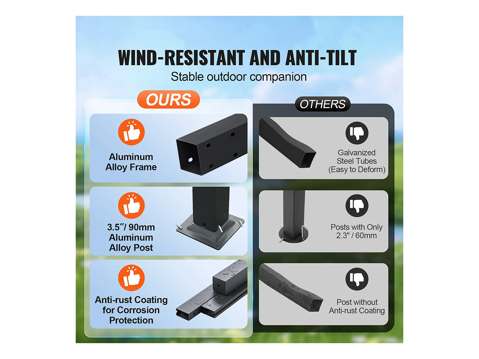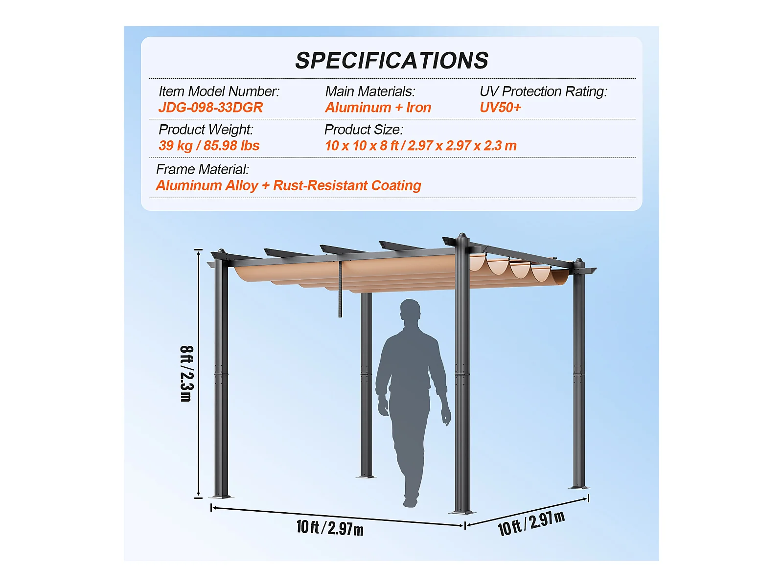 Pergola Extérieure Rétractable SucceBuy, 304,8 x 304,8 cm, avec Auvent de Protection Solaire, Aluminium, Beige