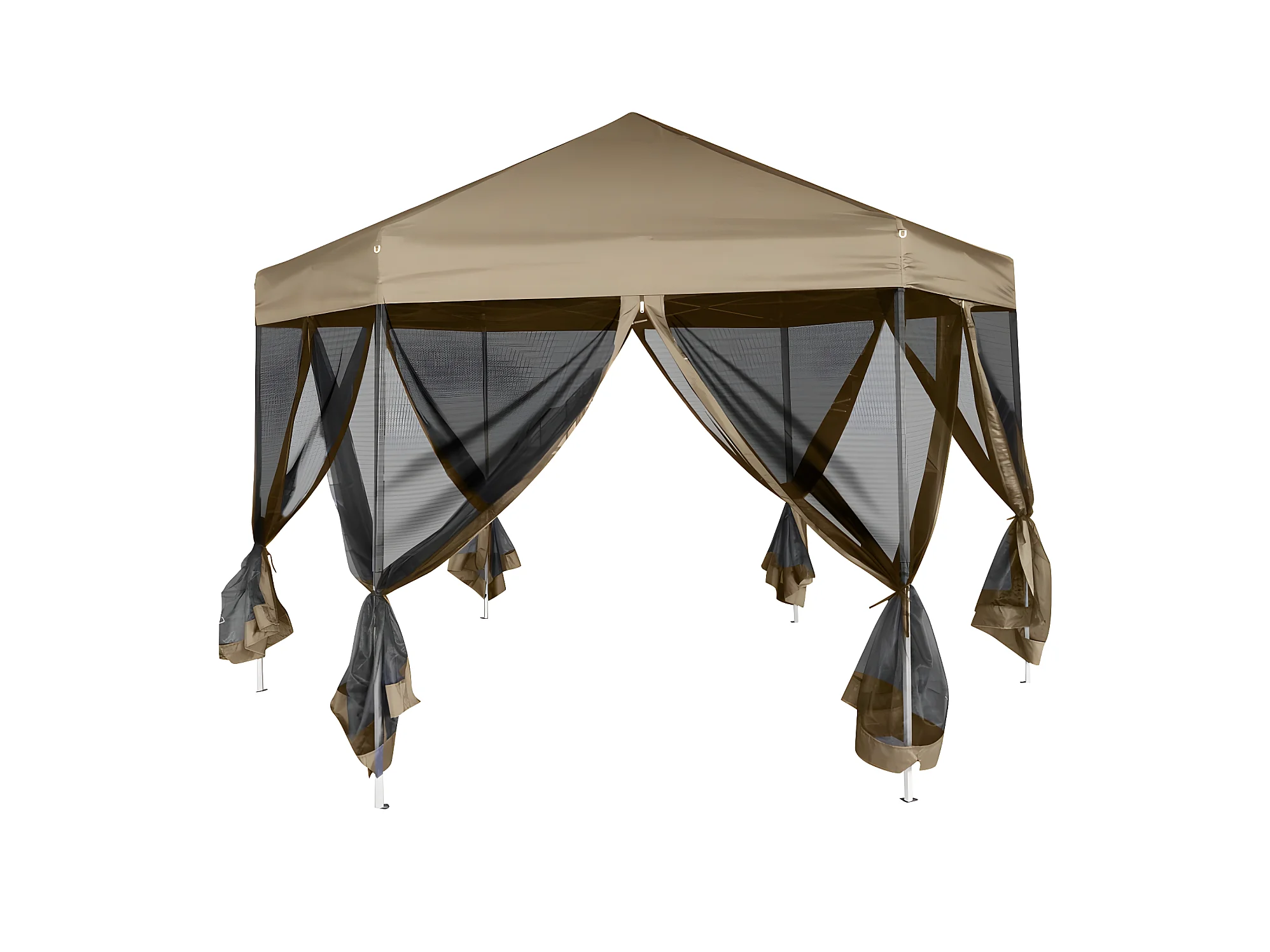 Tonnelle hexagonal et parois latérales 3,6x3,1 m taupe 220g/m² WVGQ5928