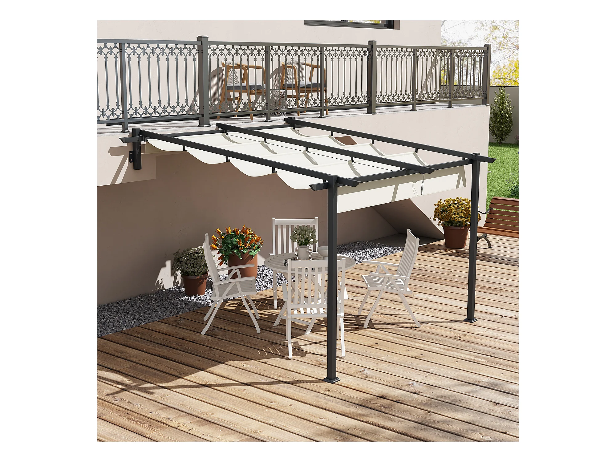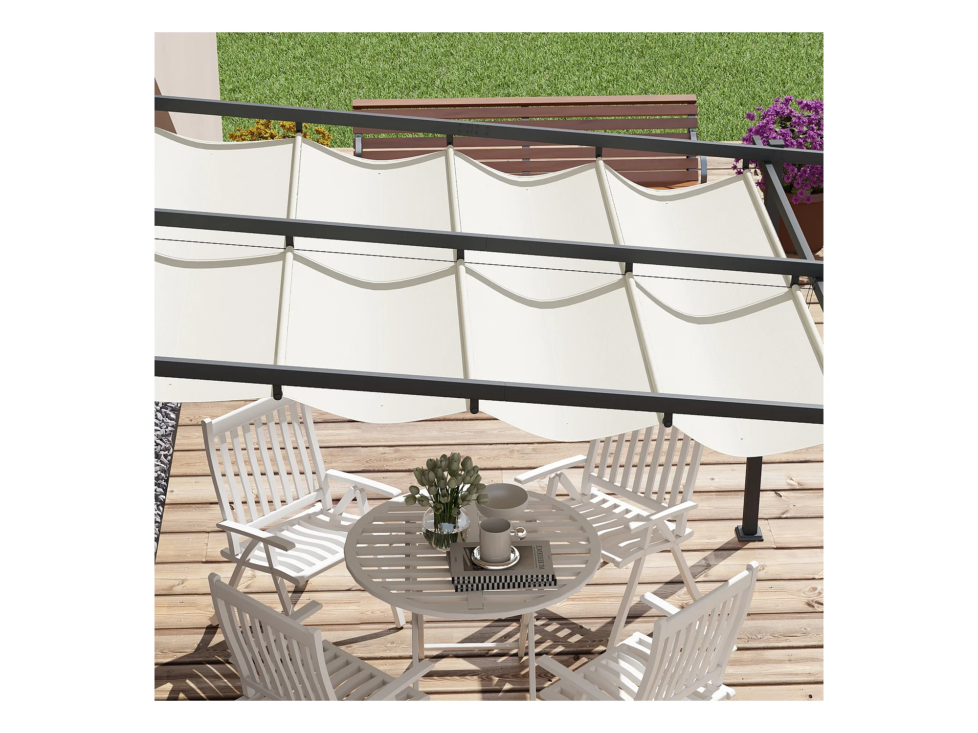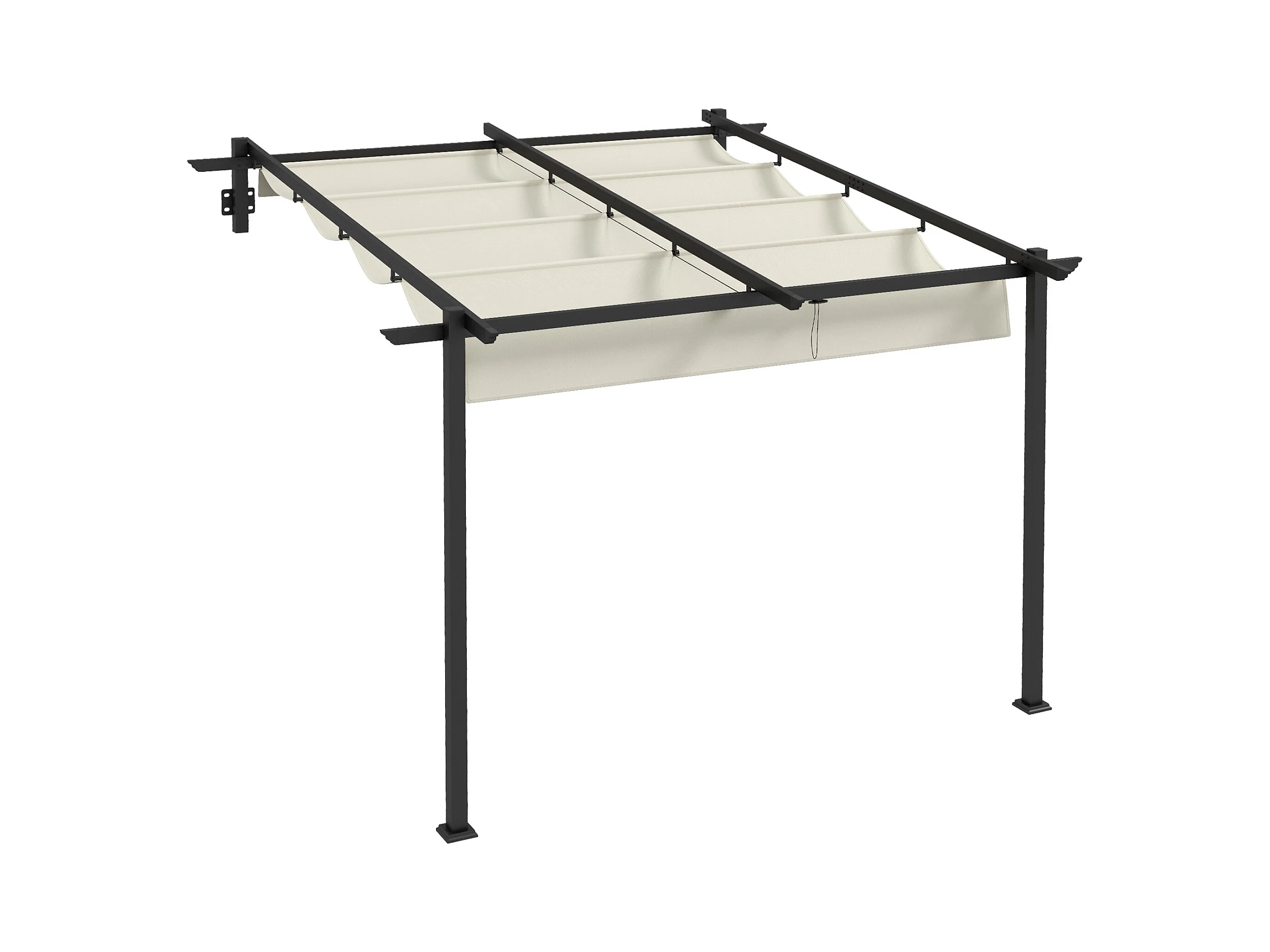 Pergola murale avec toit rétractable, structure aluminium, crème (297x297x230cm)