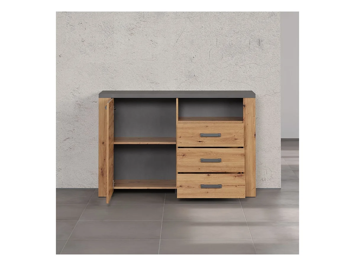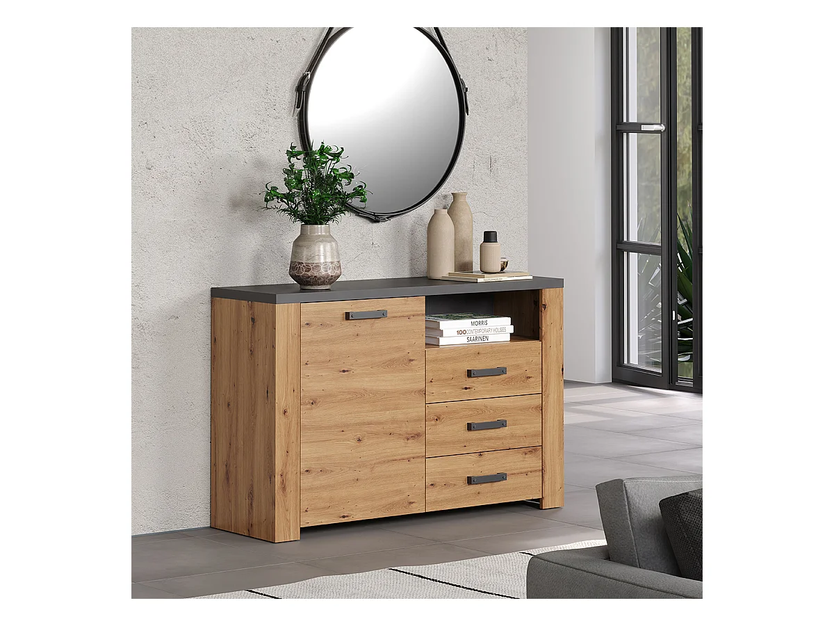 Buffet 2 portes 3 tiroirs décor chêne et gris anthracite Austin - L203,80 cm
