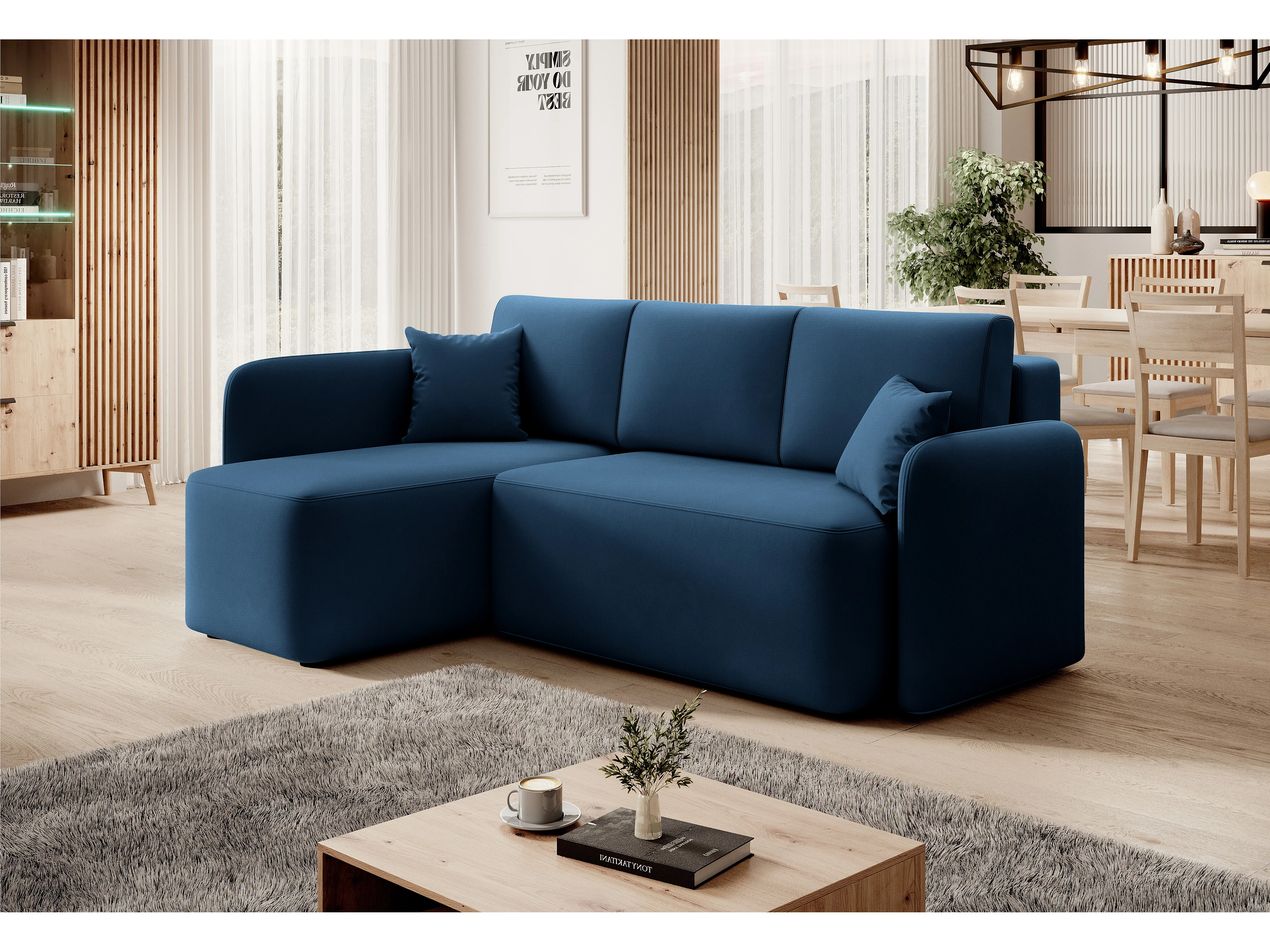 Petit canapé d'angle convertible 3 places tissu bleu Takin 206cm-Méridienne A gauche