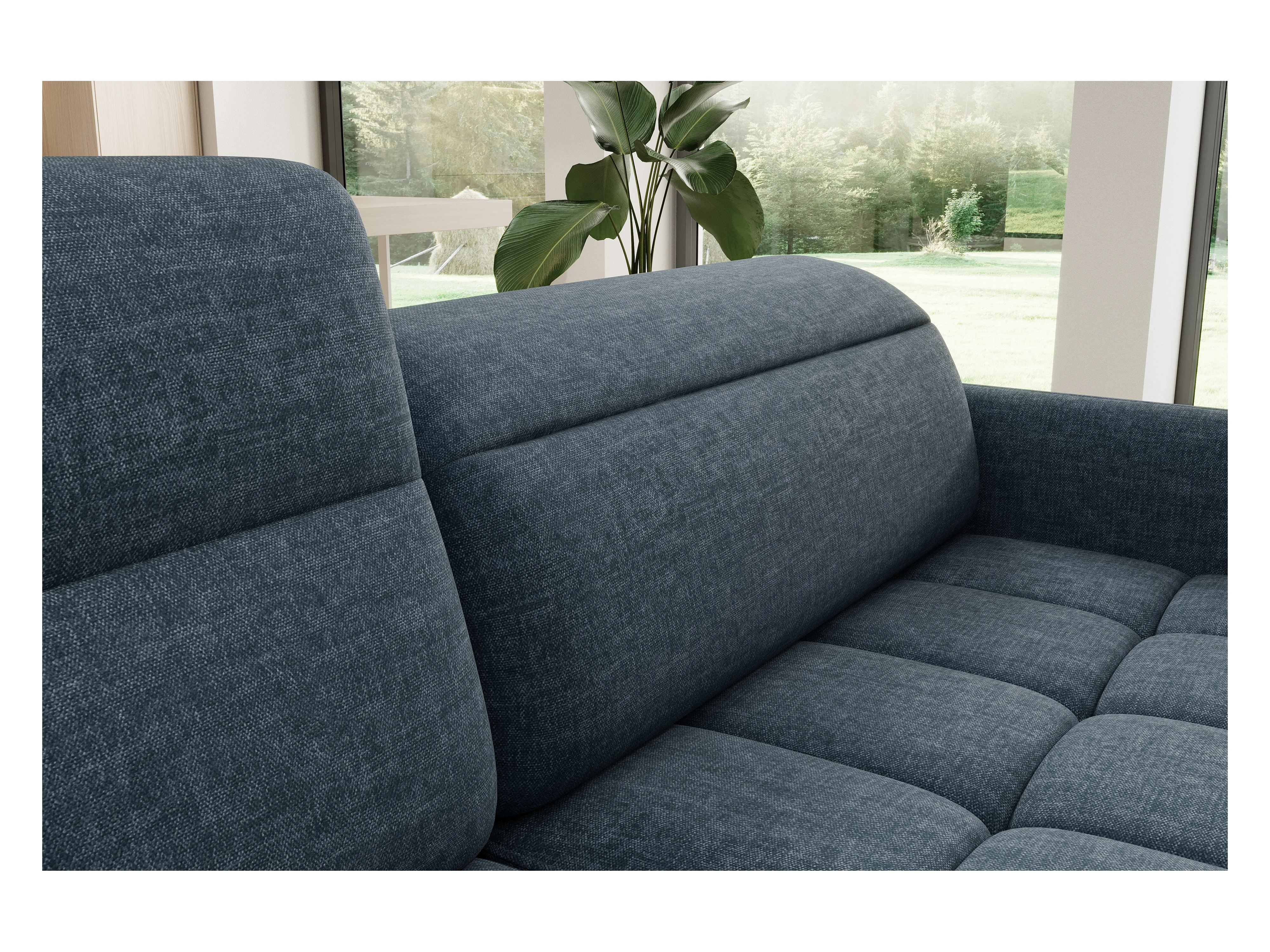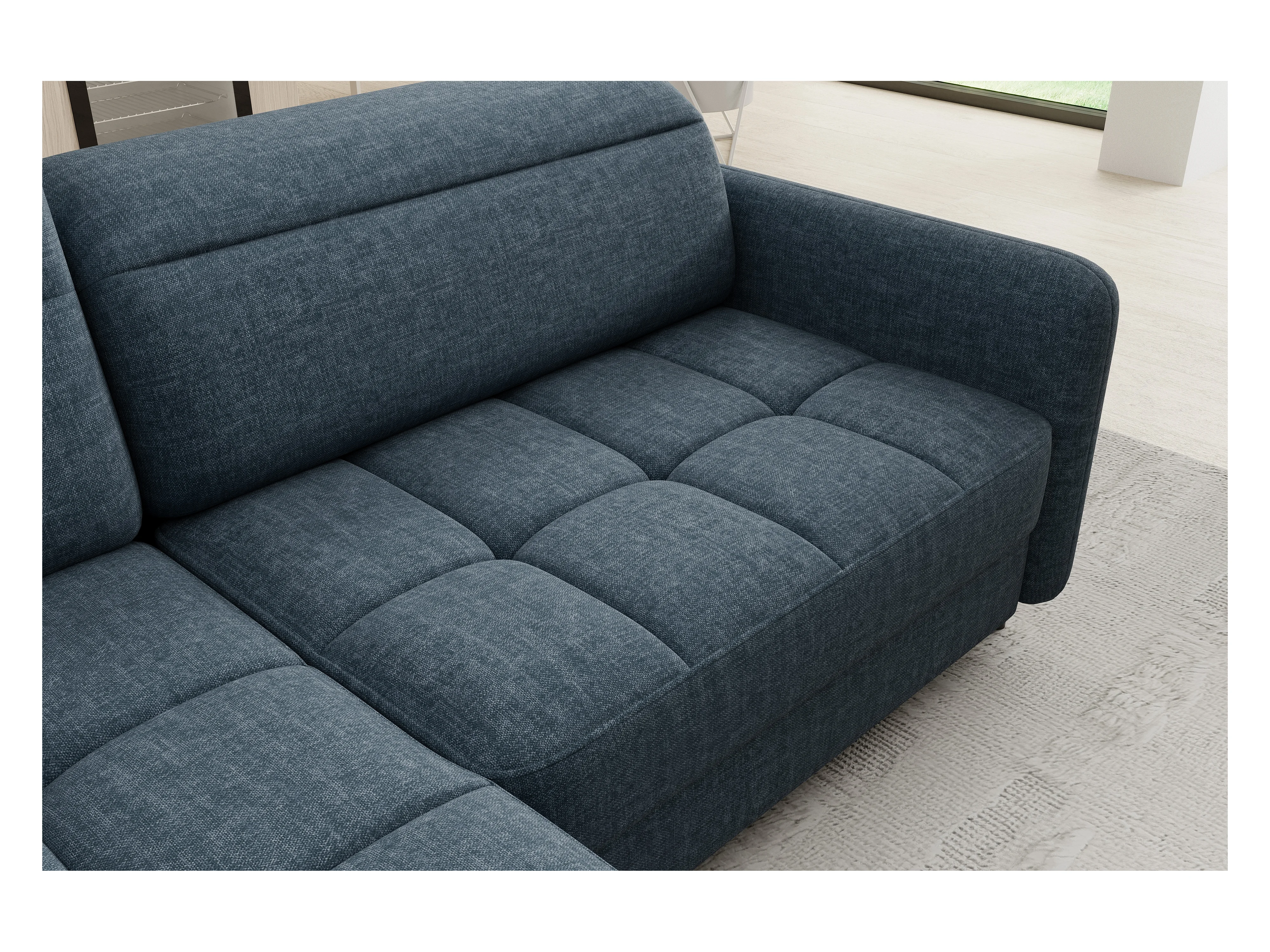 Canapé panoramique convertible BENTO en tissu avec coffre de rangement-Bleu-angle droit
