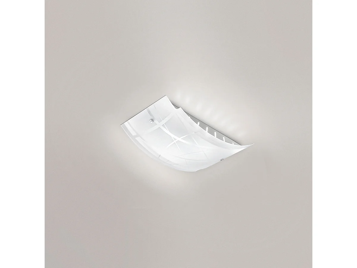 Petit plafonnier Nereide 35x25cm en verre satiné sérigraphié blanc 2XE27, base chromée, design moderne, max 2x42W
