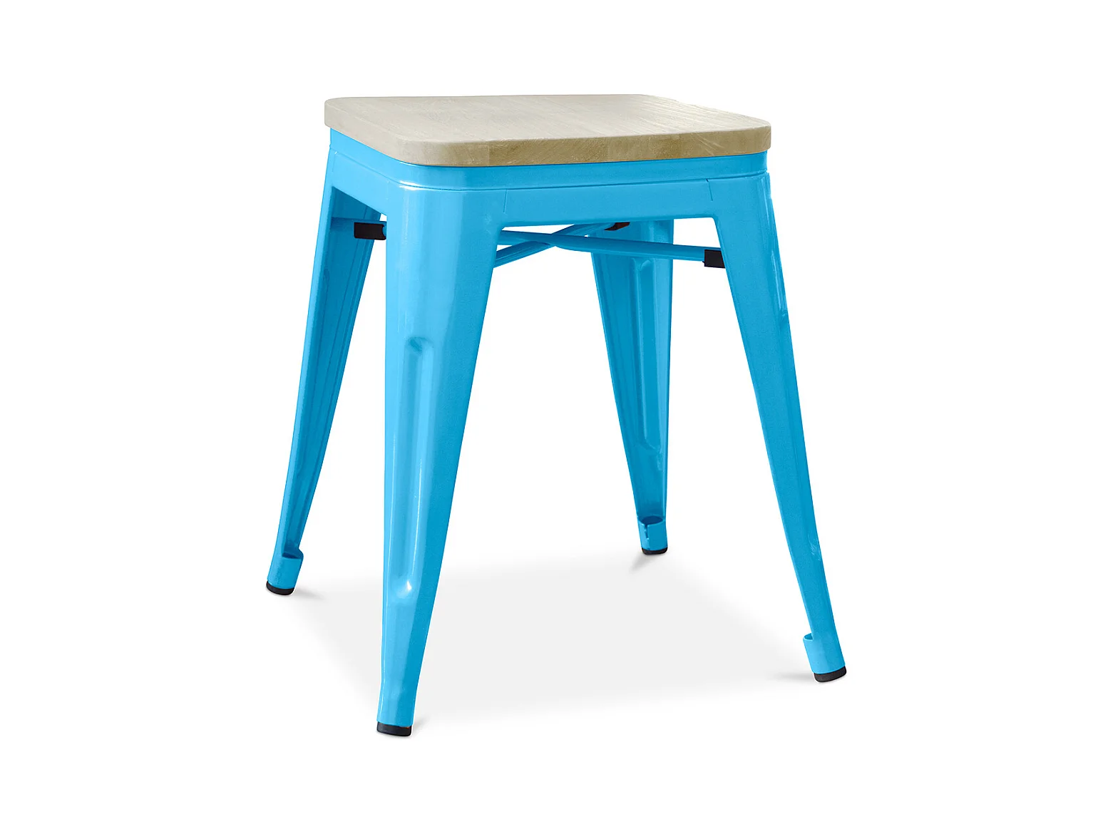 Petit tabouret industriel acier brillant et assise en bois massif naturel Reko 45cm-Couleur Bleu turquoise