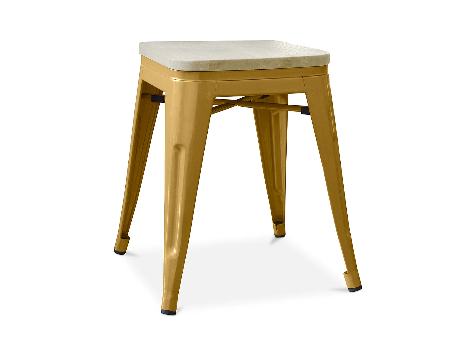 Petit tabouret industriel acier brillant et assise en bois massif naturel Reko 45cm-Couleur Doré