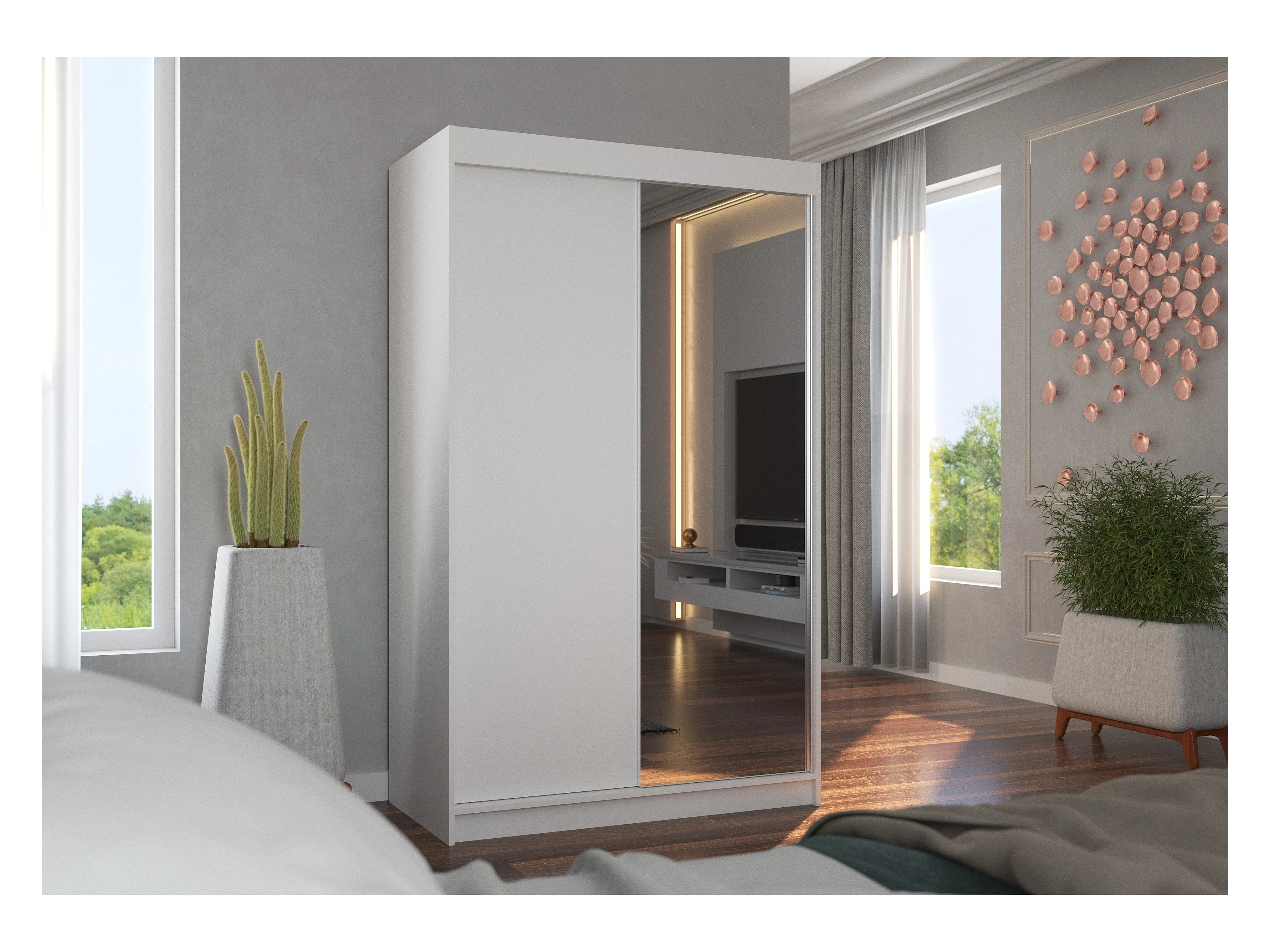 Petite armoire moderne de chambre à coucher blanche avec 2 portes coulissantes miroir Ibizo 120cm