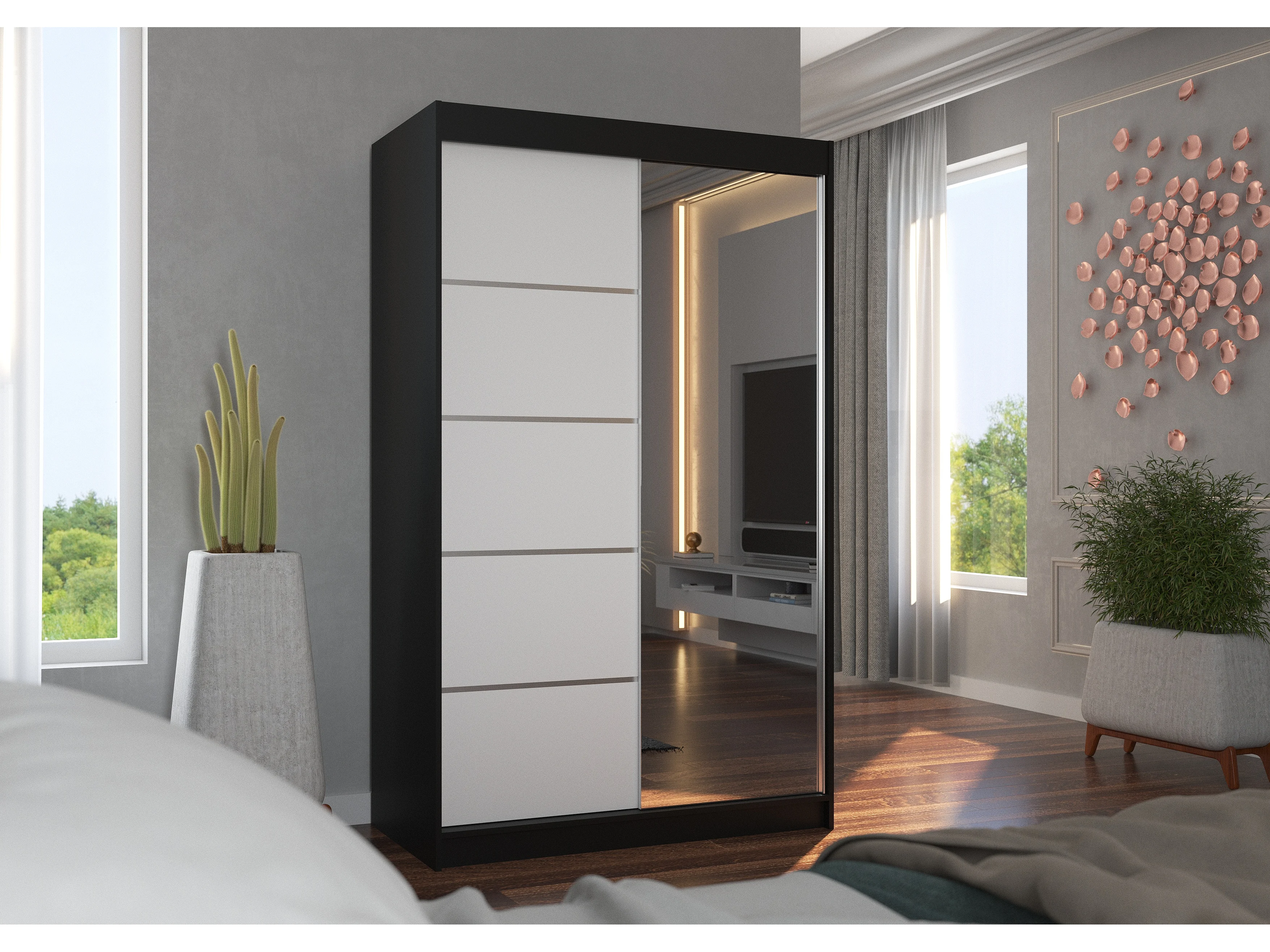 Petite armoire design de chambre à coucher 2 portes coulissantes noir et blanc avec miroir Kinzo 120cm