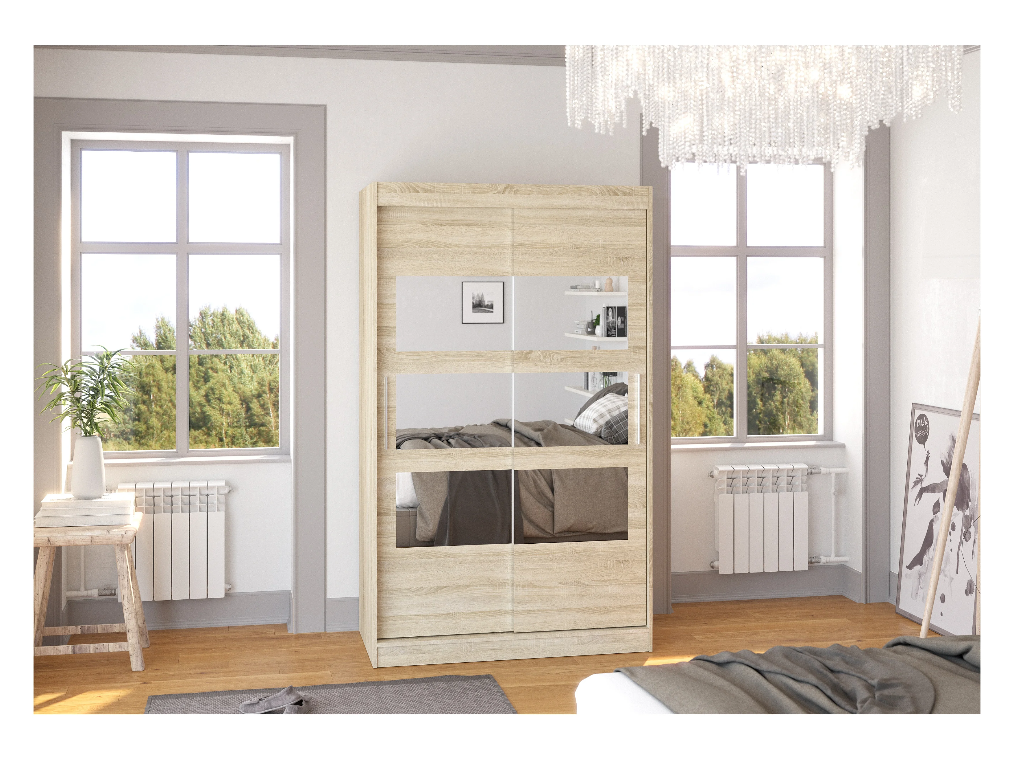 Petite armoire de chambre à coucher 2 portes coulissantes naturel avec 6 miroir Kolida 120cm