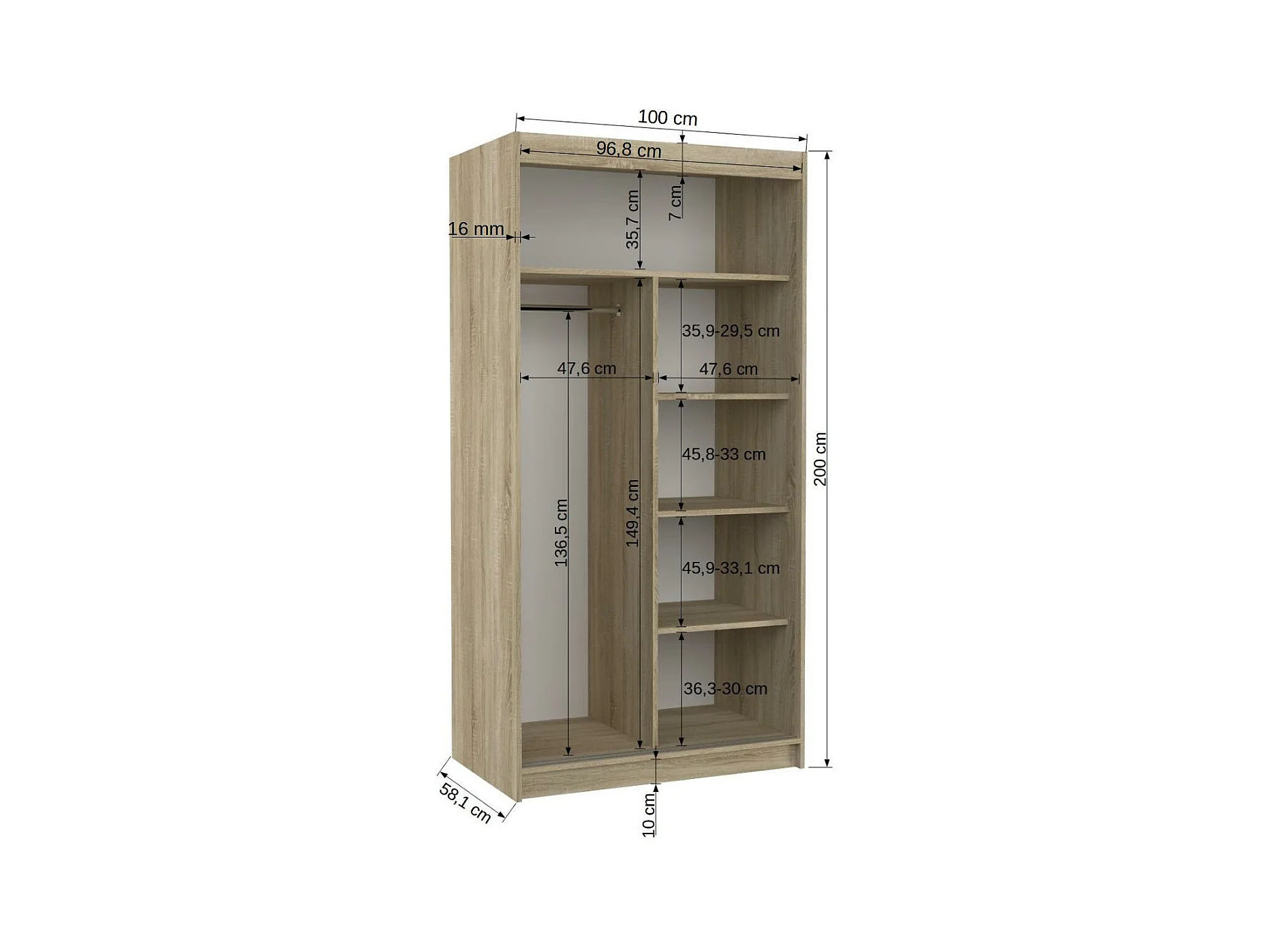 Petite armoire de chambre naturel 2 portes coulissantes en bois blanc Rika 100cm