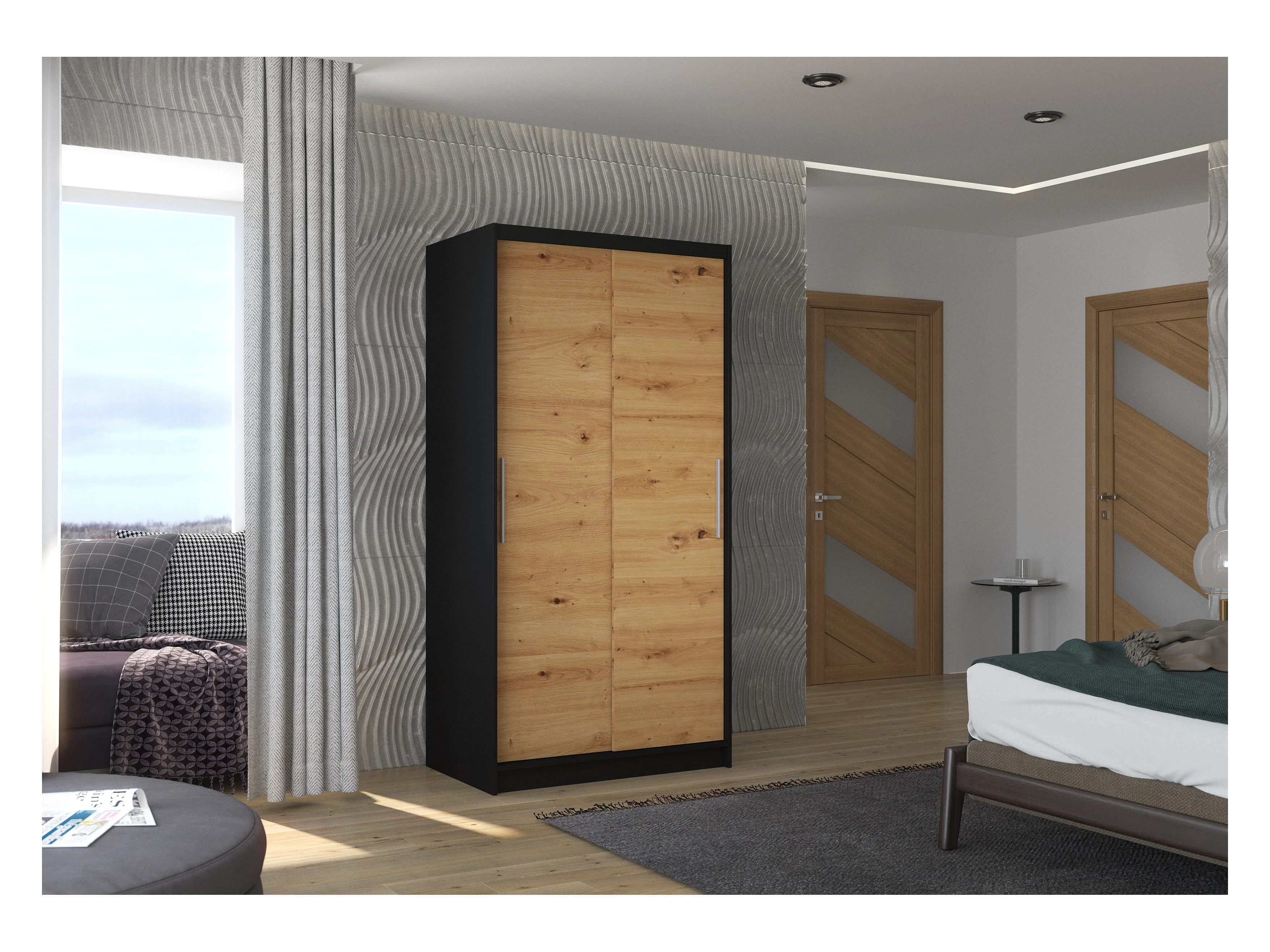 Petite armoire de chambre noir 2 portes coulissantes en bois artisan Rika 100cm
