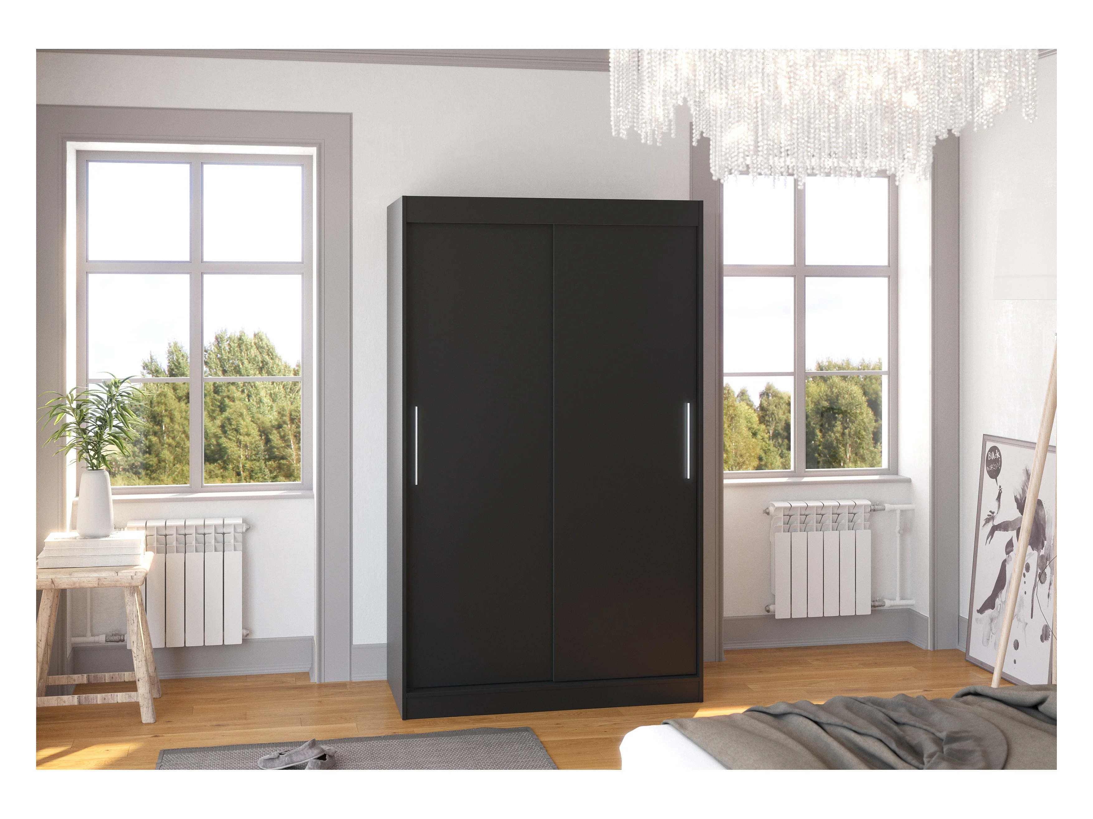 Petite armoire de chambre noir avec 2 portes coulissantes Benko 120cm